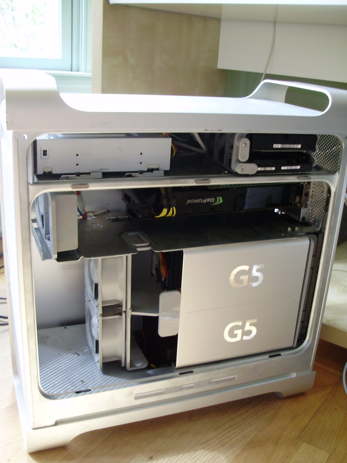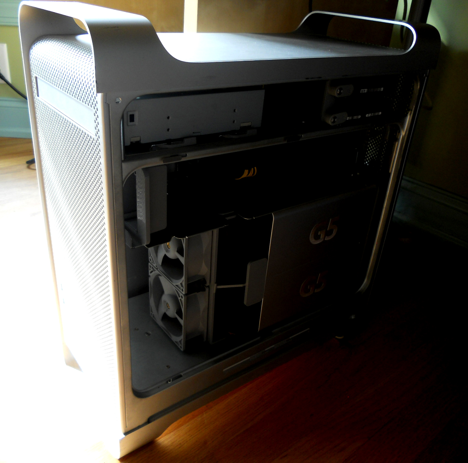 Whether you are an apple fan or not, it is hard to disagree with the fact that the Power Mac G5 computer looks great, inside and out. My goals for this project were to preserve the look of the case, inside and out; fit my PC's hardware, including a full length ATX motherboard, 2 GPU's, and a CoolIt ECO; and keep the system fully upgradeable, meaning no modifying the hardware.