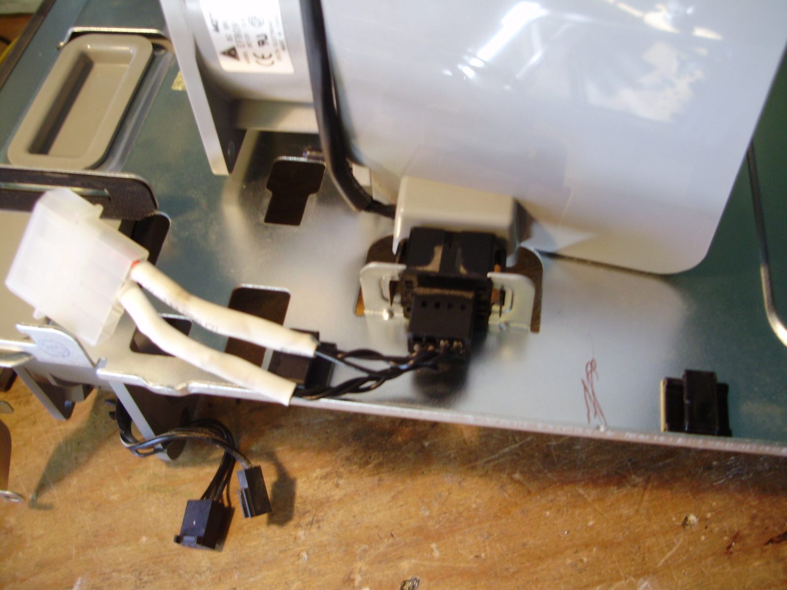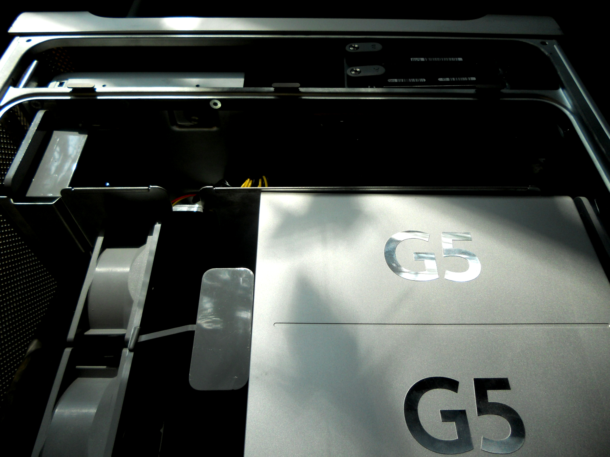 Since I wanted to keep the original internal look of the G5, I rewired all the stock fans to fit standard Molex connectors. All fans run of 5V, since they sound like leaf blowers at 12. I used wiring diagrams found HERE. For the front pair of fans, I reused the slide-in plug, so the fans can be hot-swapped.