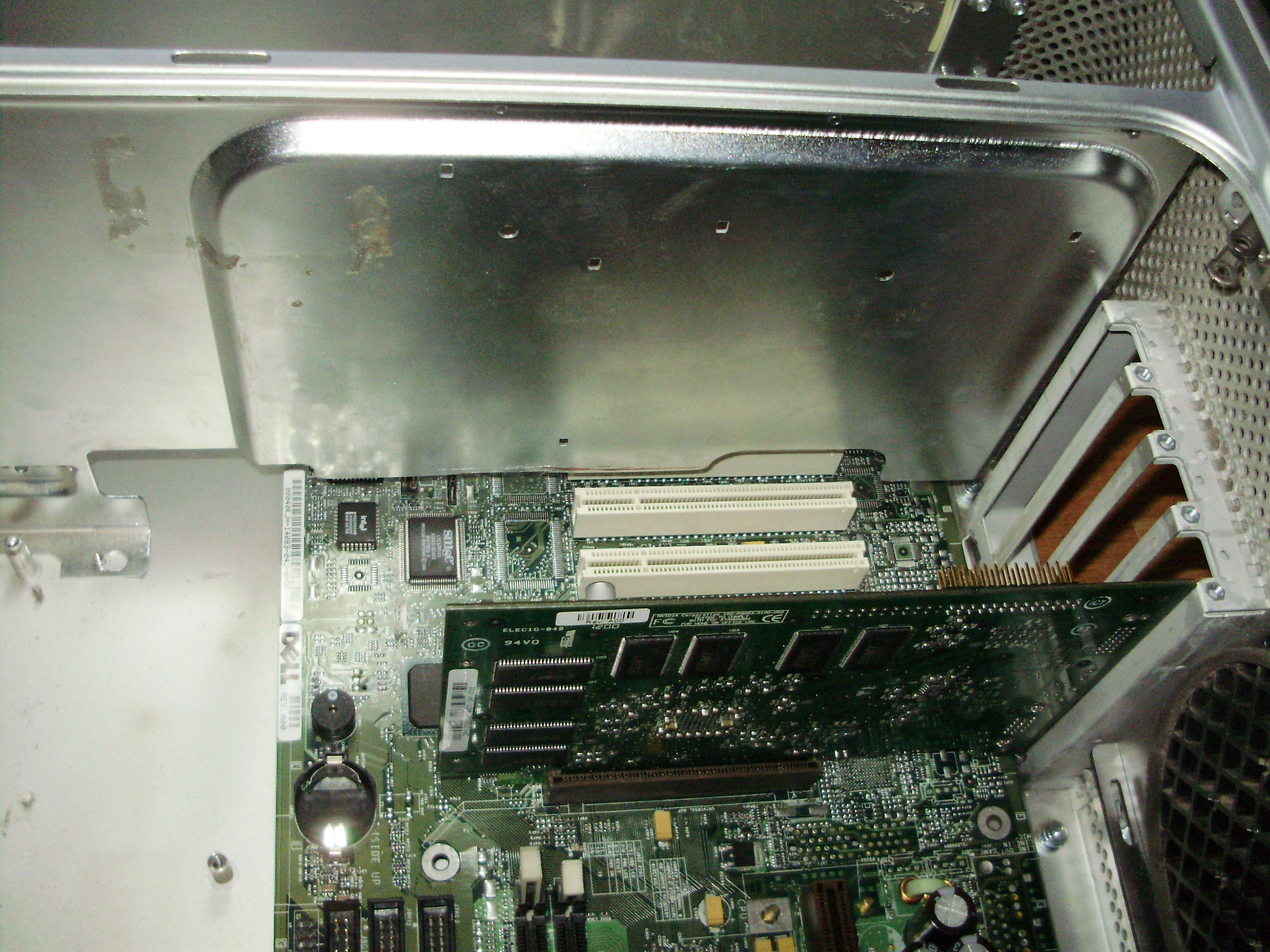 Although it looks very neat and tidy on the inside, the G5 is an absolute pain to completely disassemble. Here are the CPU's mounted to their heatsinks. The stock AMD cooler is for size reference: