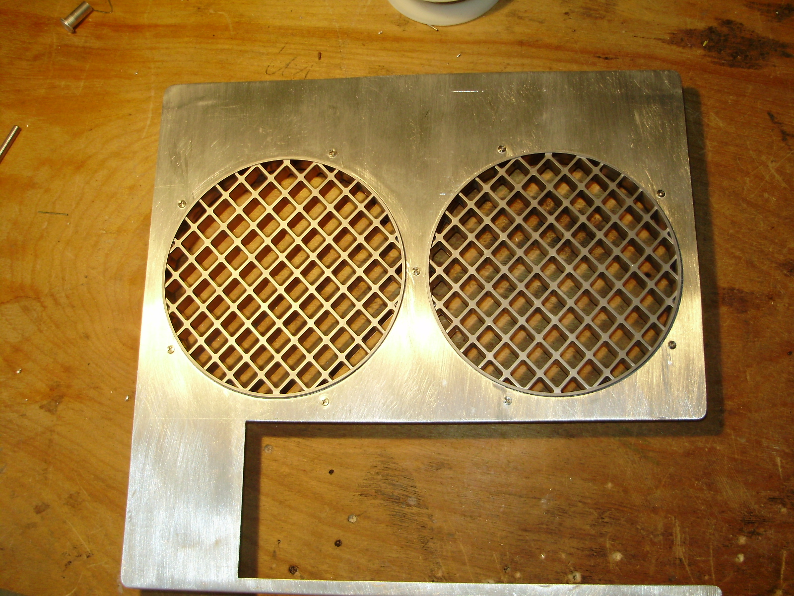 Then I cut the PCI divider so that the motherboard could fit under it, and made a mounting bracket for it out of aluminum: