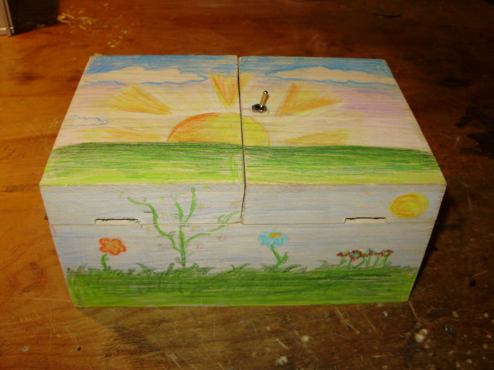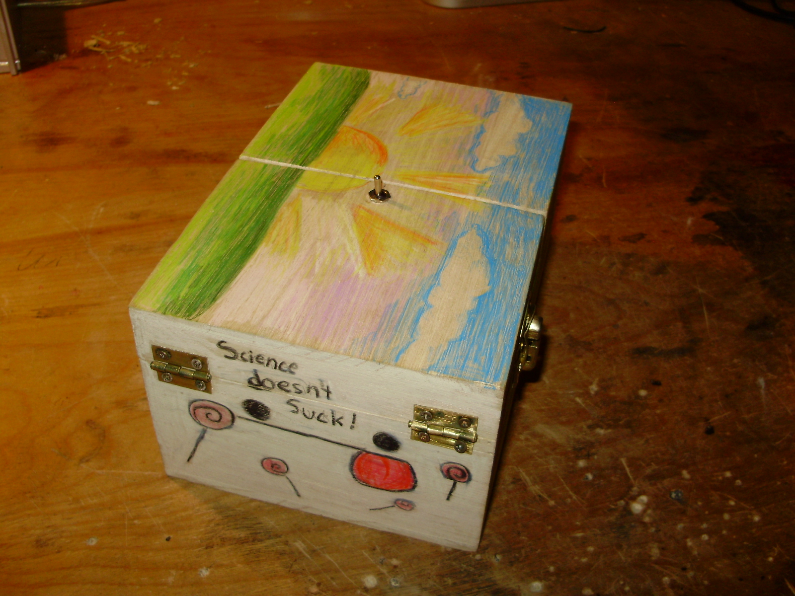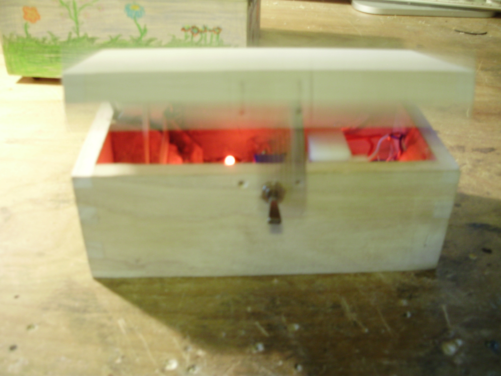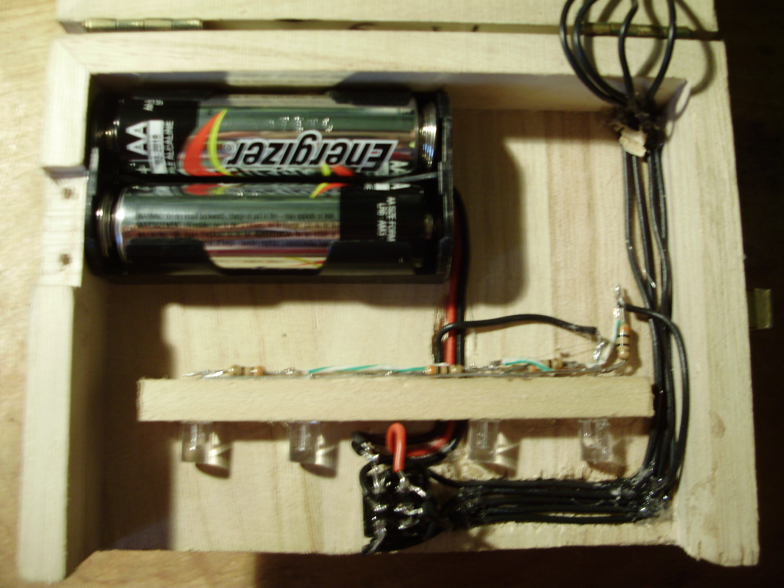 I built three "Useless Machines" within the last few months, and here are two of them. I made one for my younger sister to decorate and give to her science teacher, and the other out of leftover parts I had. The circuits of both have been modified from the standard circuit to include an LED strip. The LED's are wired through the bumper switch, so they only light up when the box is open and the arm is moving.