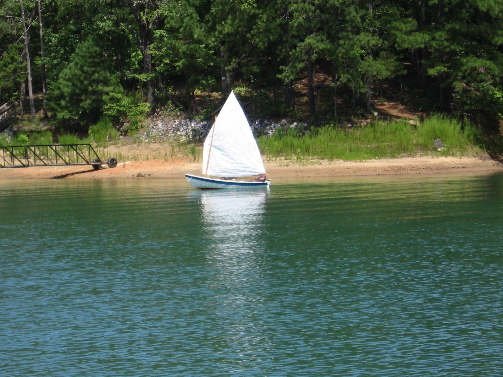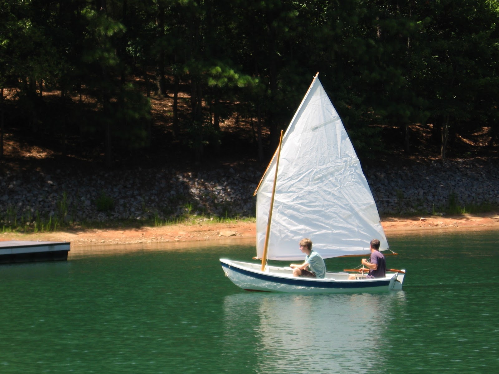 Back in the summer of 2007, I went to the Wooden Boat School in Maine with my granddad, and we took the Build a Shellback Dinghy class. We made very slow progress on the boat after that, and it is only now finished. The boat is made out of marine mahogany plywood, and it is just over 11 feet long. It has a mast, spars and sail in addition to oarlocks, but they do not fit on the boat in my granddad's indoor wood shop.
