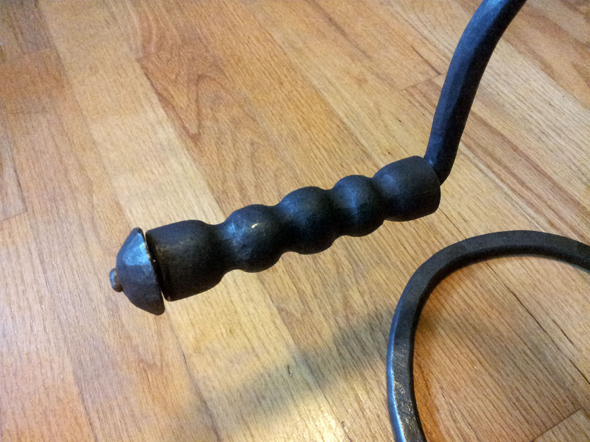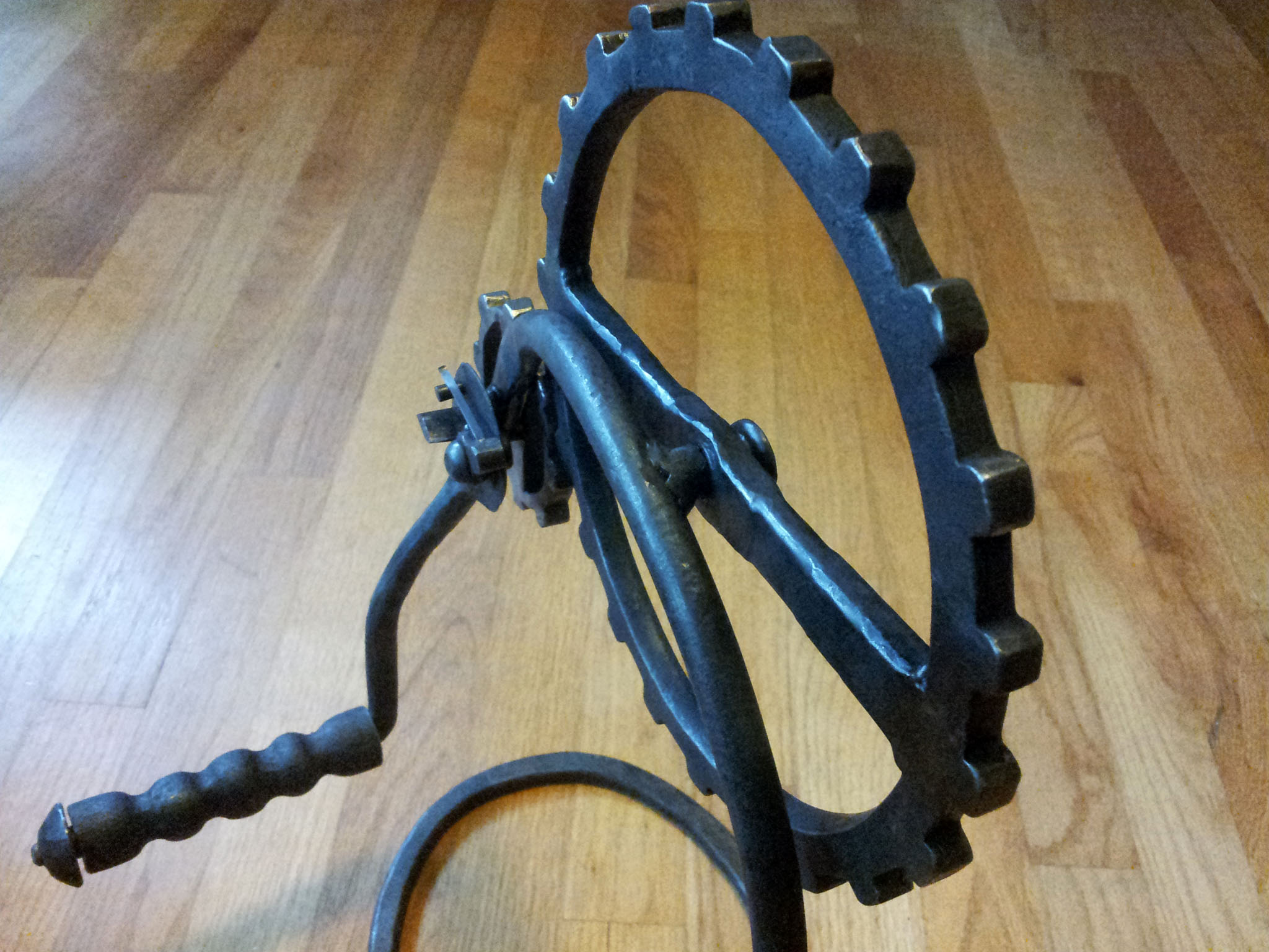 The handle was forged from a 1" pipe, and it spins freely on the crank.