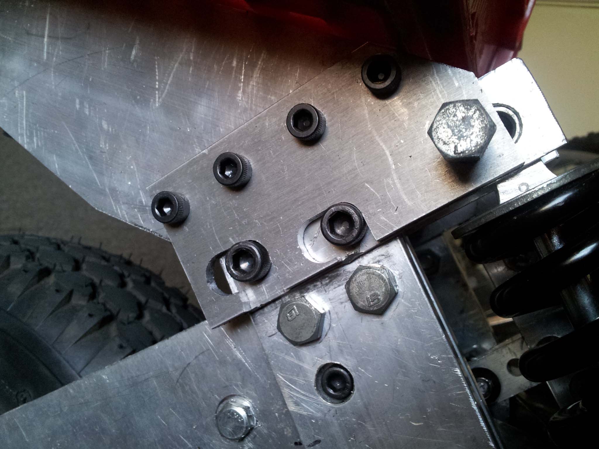 And here engaged. Once the bolt heads are engaged, I simply screw in the hex cap bolt with my fingers. It fits into the hollow space where the suspension pivots: