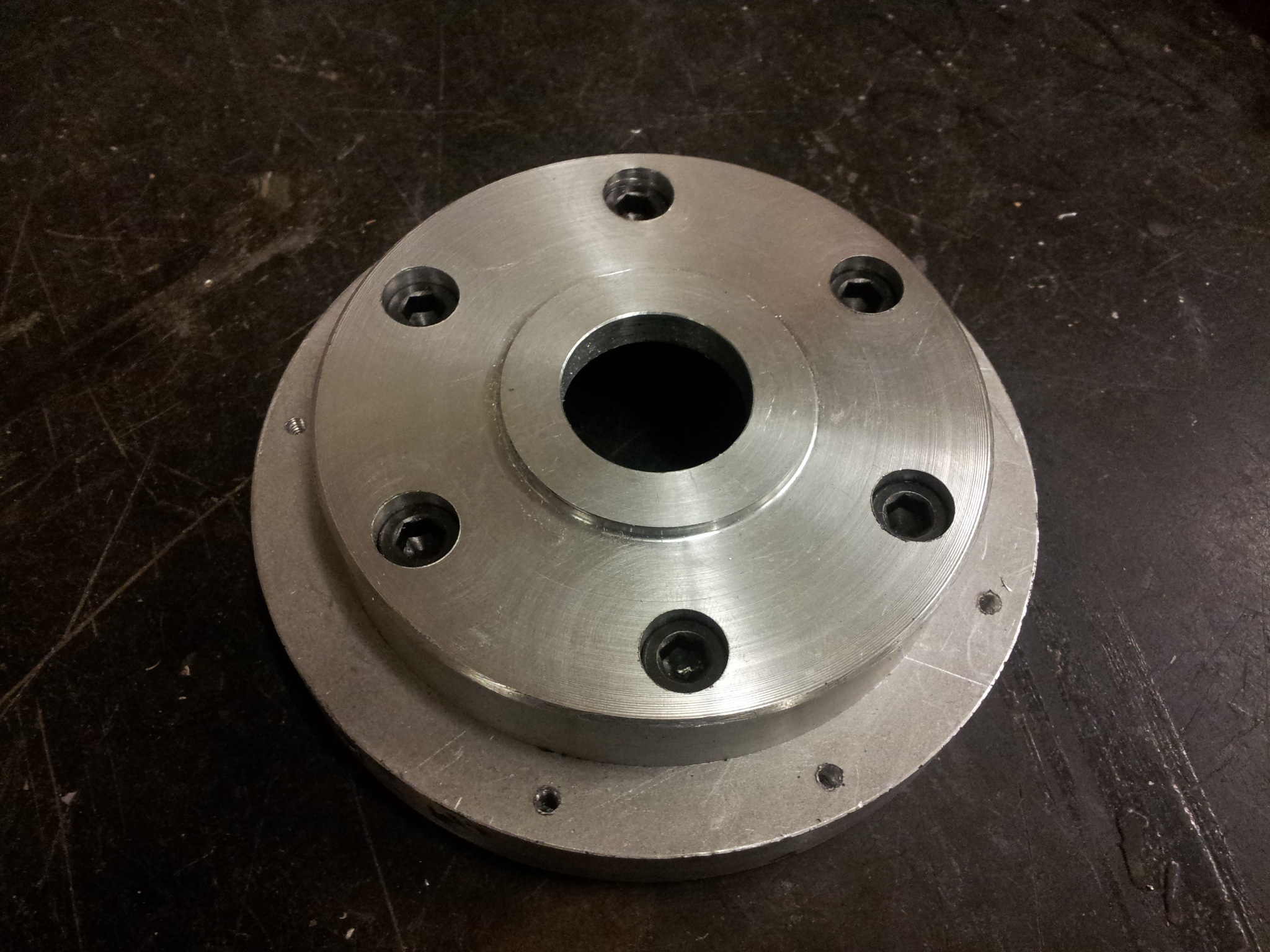 The plate that actually will hold the sprocket bolts to the fist plate. The sprocket will later be bolted to the raised center section of the adapter.