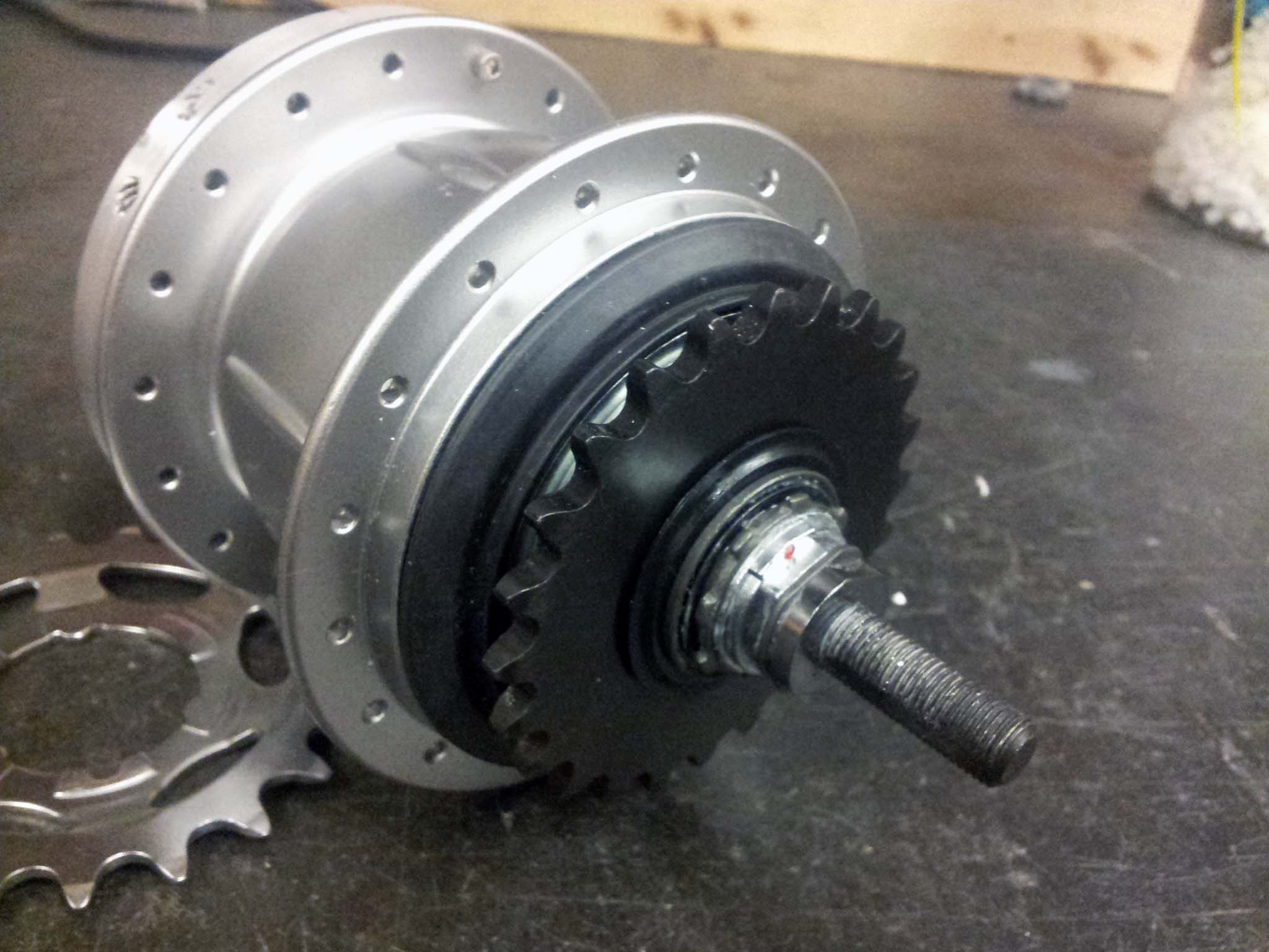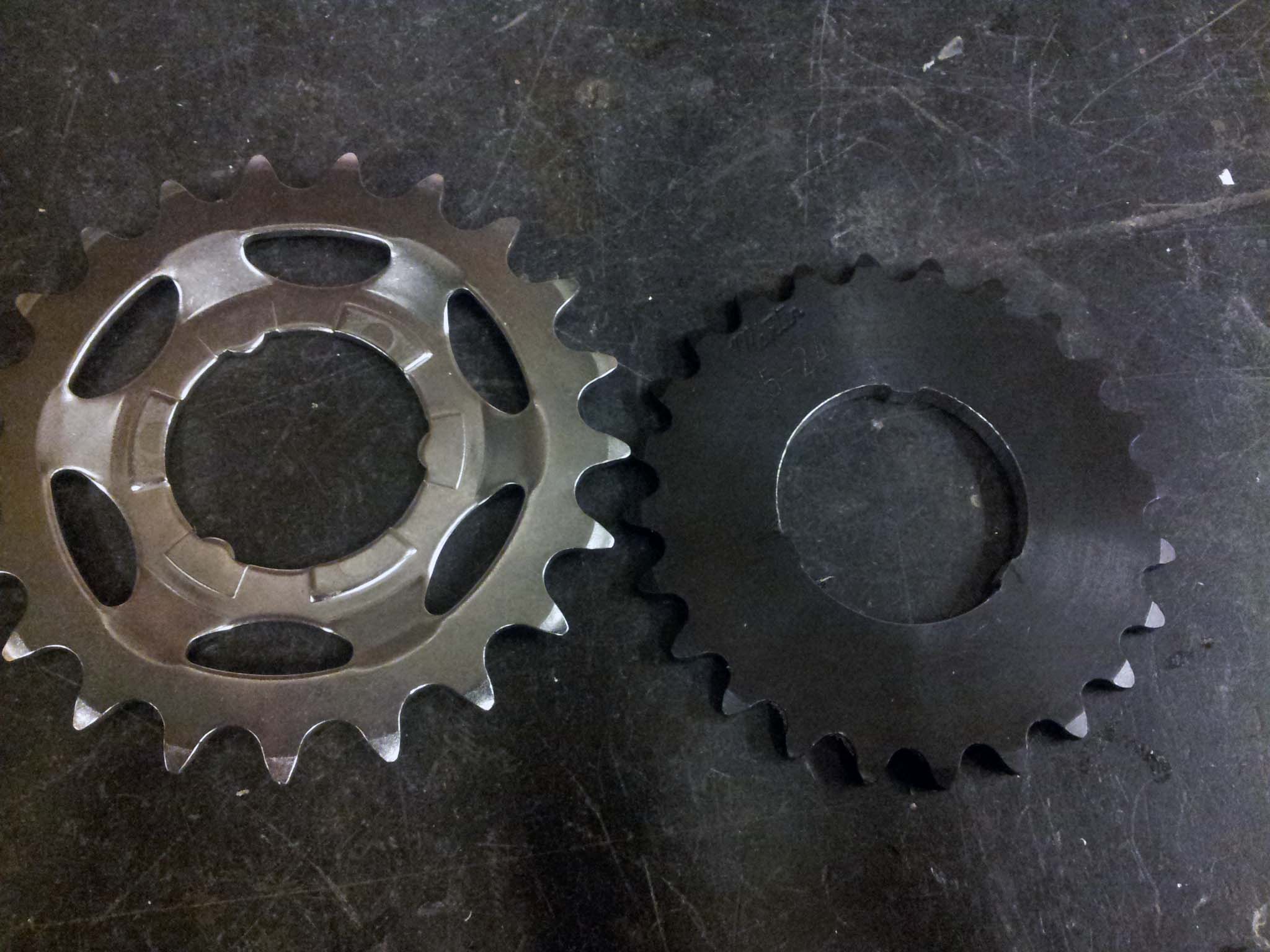 Attaching anything to the input end of the internal gear hub was also a problem. It came with a pair of bike chain sprockets, but I wanted to use 35 chain. The stock sprockets had an annoying 3 spline hole in it that meshes with the hub. I more or less recreated the pattern by widening the hole in the sprocket on the lathe, and then using the indexing head to mill the three wider portions of the hole. The splines had to be slightly filed by hand to fit properly, but the final fit ended up being extremely close. Hopefully the torque from the motor won't just strip off the little splines.