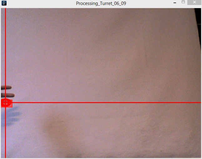 To get the Project Sentry Gun code to work for my setup, I had to make a few minor modifications. First, I completely erased the stock firing code and replaced it with one line to simply turn the fire pin on the Arduino to HIGH. Also, by default, the motion tracking bit of the software has a lower limit for the size of moving objects it will target. It locks onto the largest moving object above this threshold. In addition to the lower limit, I added in an upper limit, so the turret will track things that are roughly mouse-sized, but will ignore larger things like people.