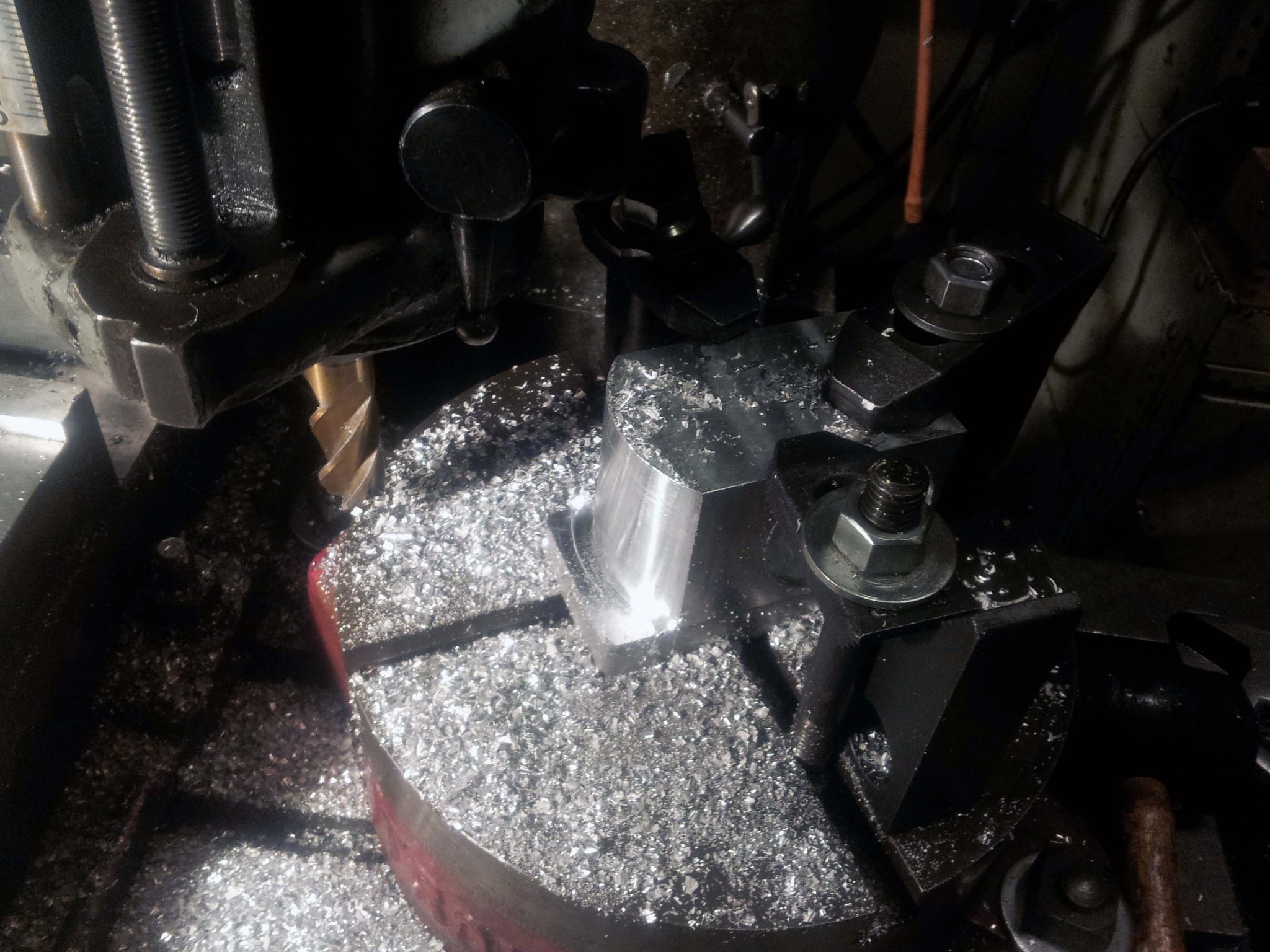 Also using the indexing table, I milled a nice curved face into the front of the stem, à la Amy: