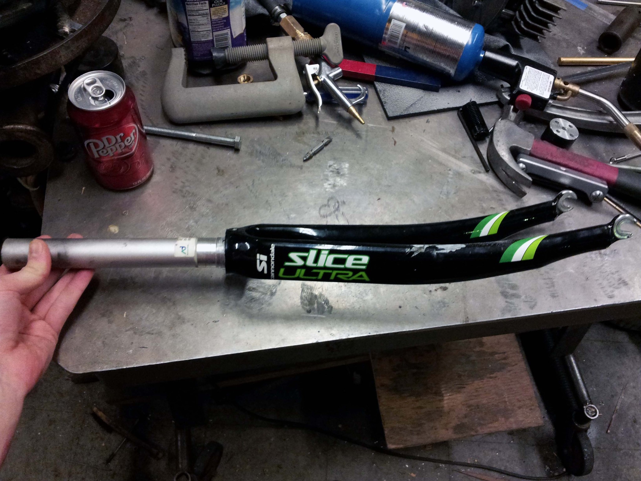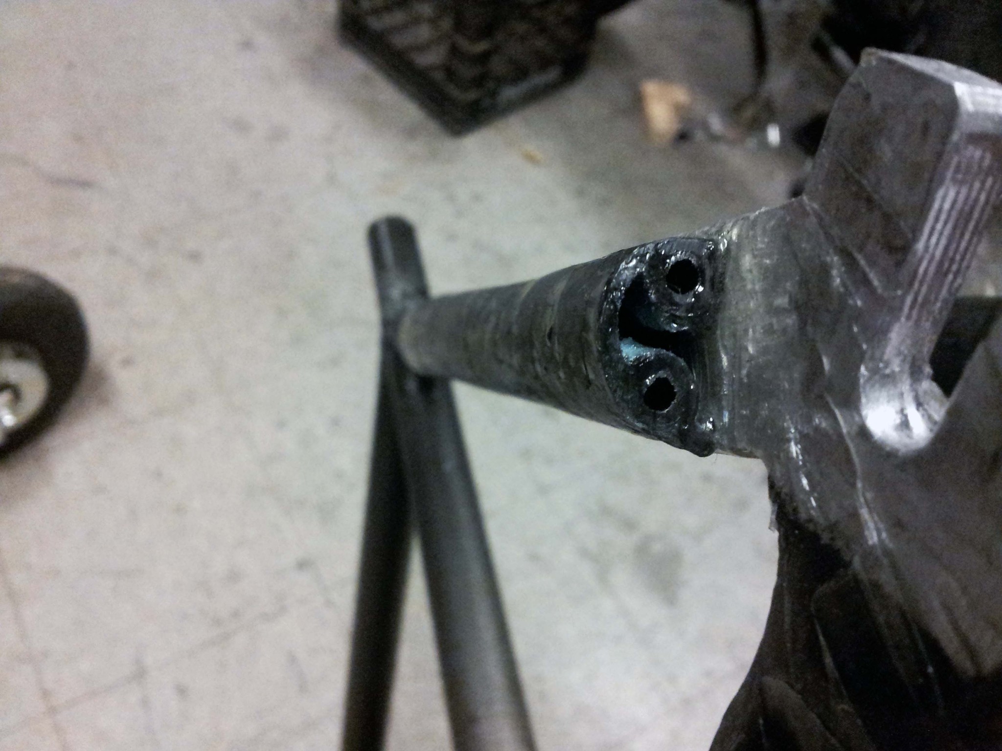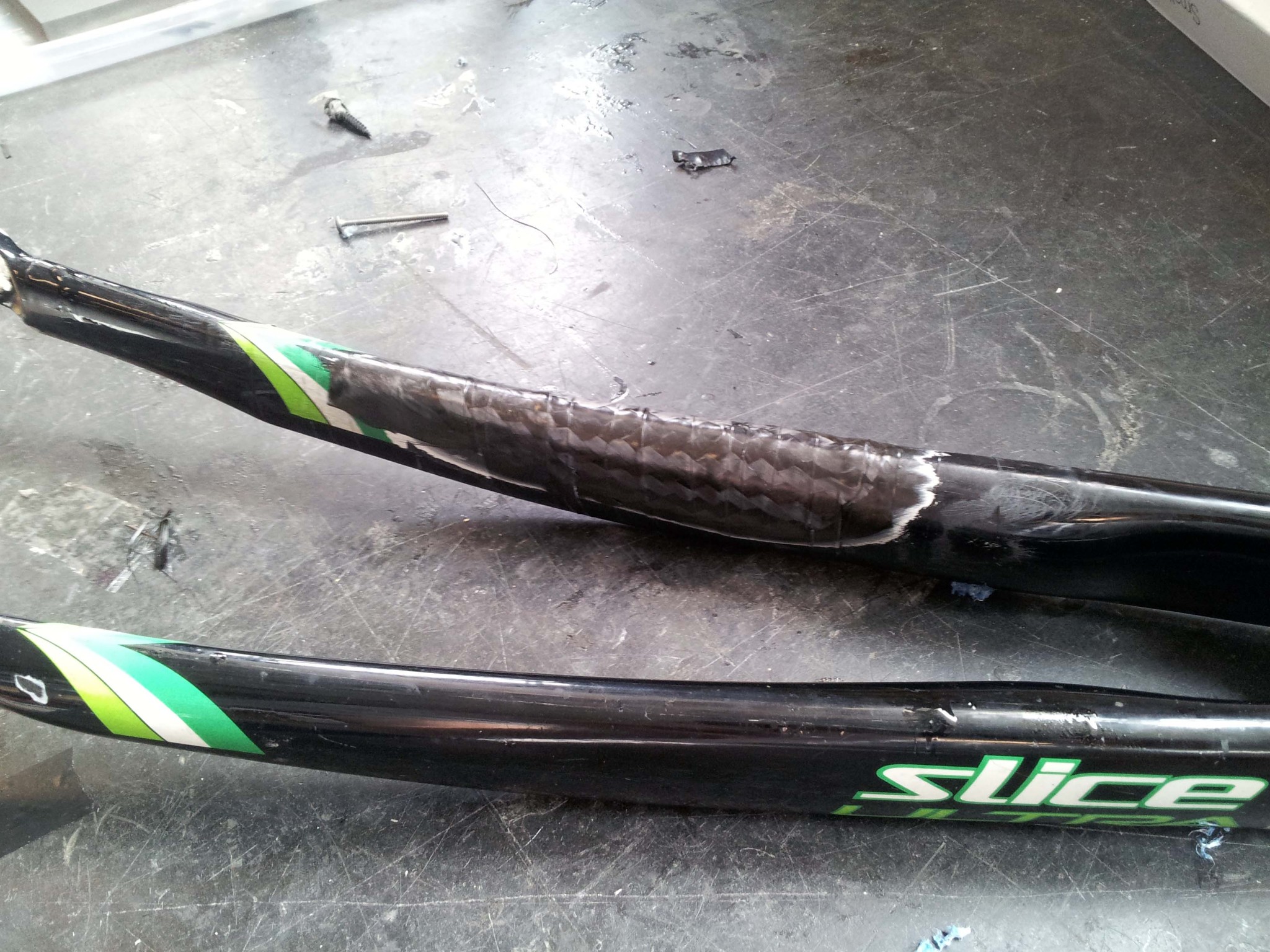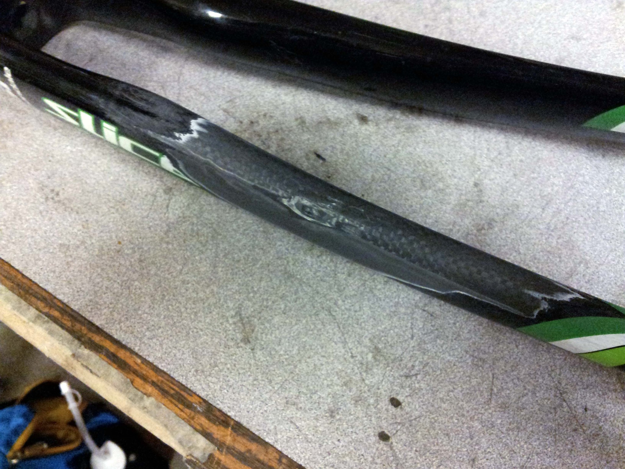 Out of curiosity, I sent out a query to reuse-ask, to see if anyone on campus had a working or only slightly broken carbon fiber fork they would be willing to part with. I thought it was a bit of a stretch, but I got a response within four hours, from someone with a fork that had been crashed.