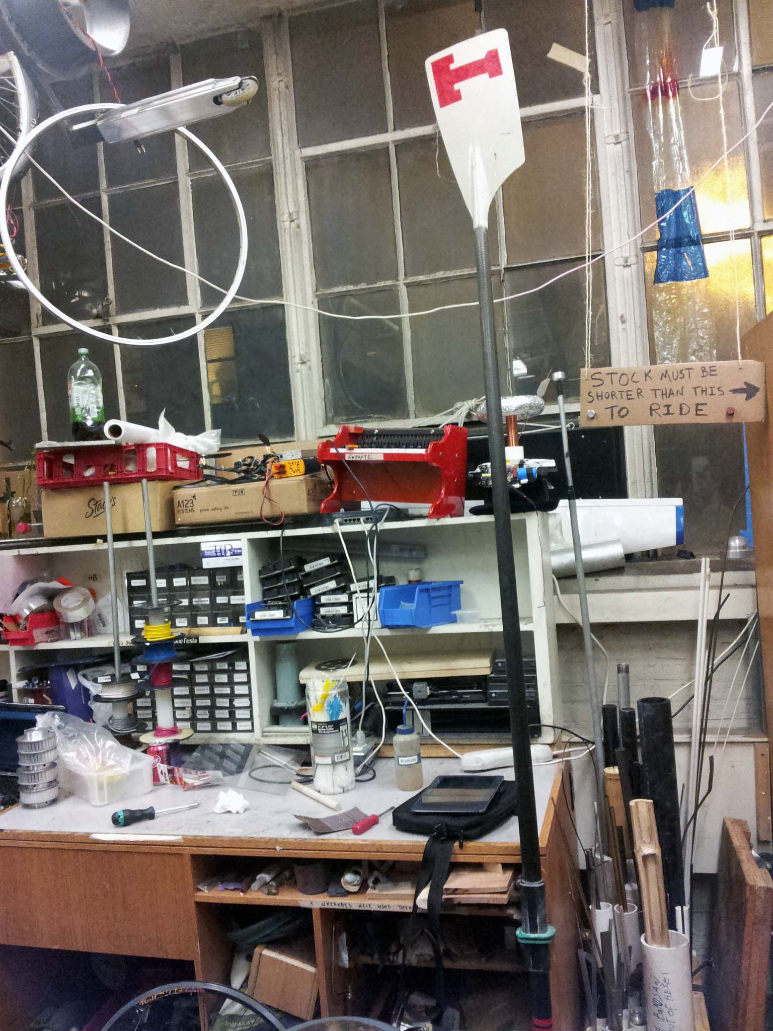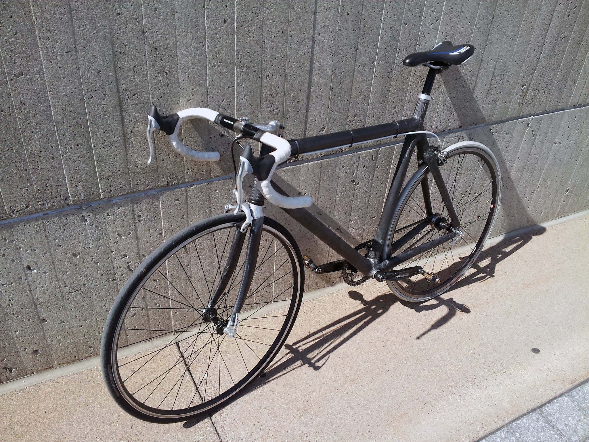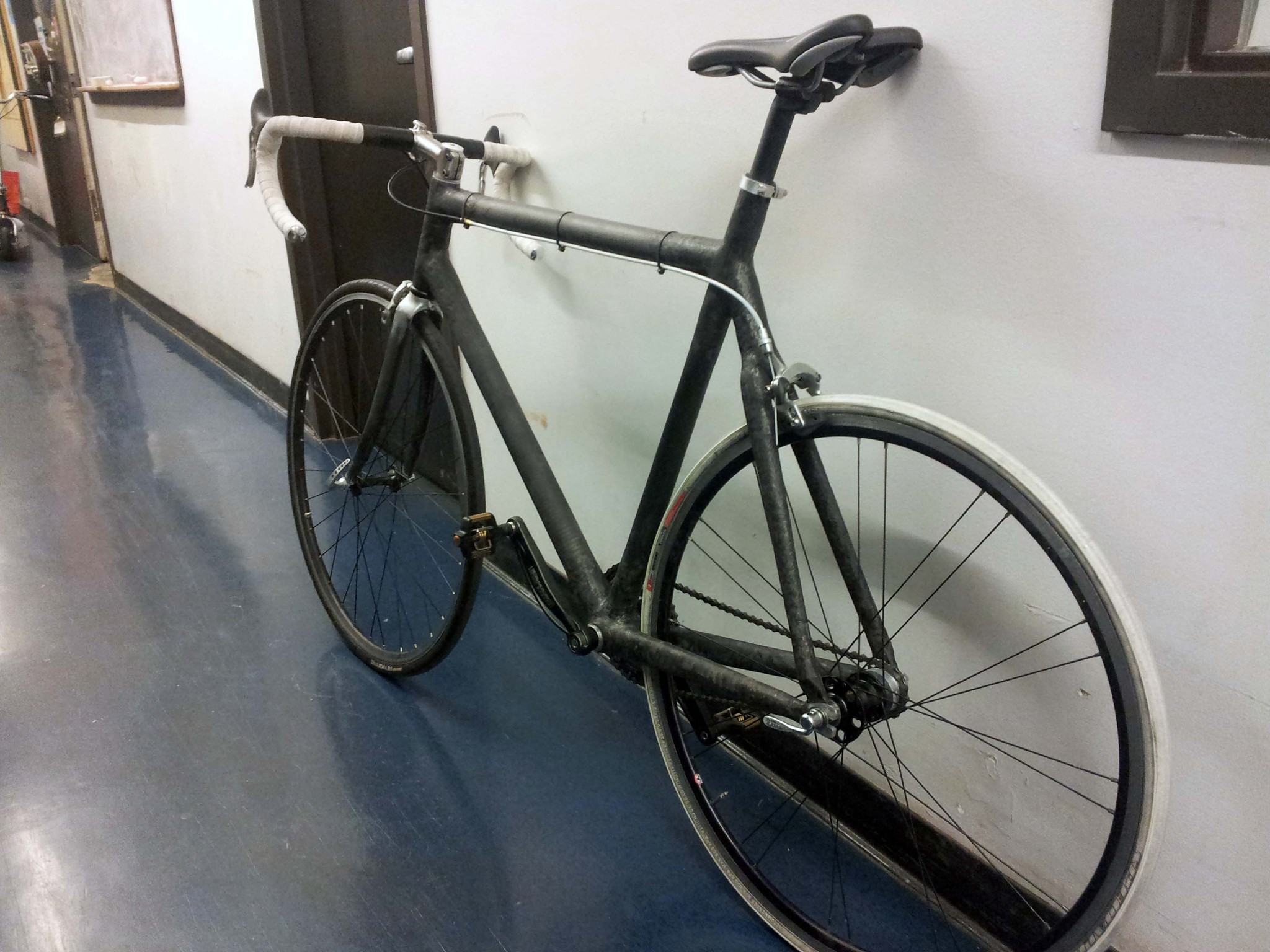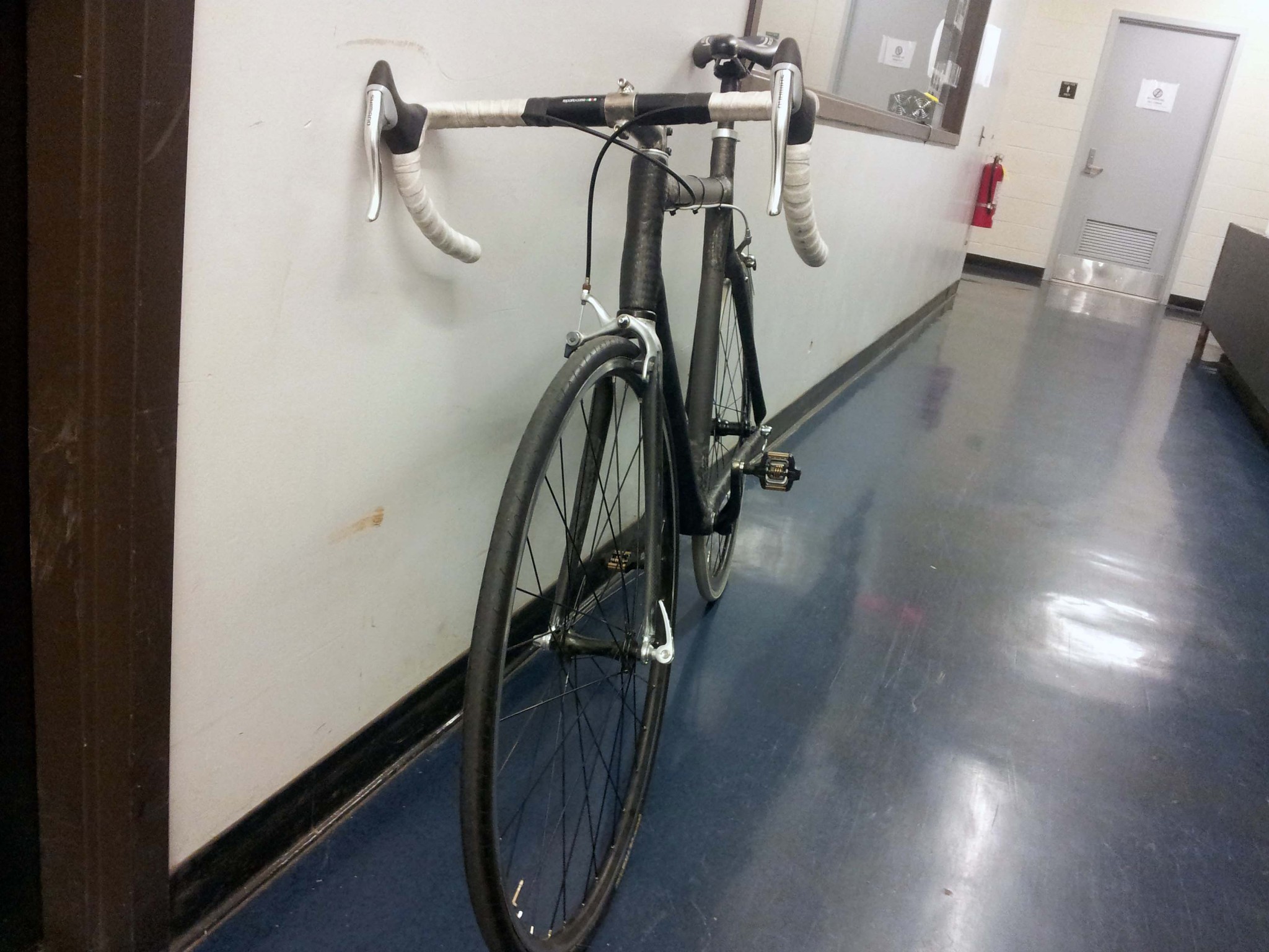 The frame started its life as a large oar. Apparently it showed up in in a trash pile on a loading dock sometime last year, and found its way to MITERS from there. The carbon fiber tube that made up the shaft of the oar happened to be about the right length and diameter to build the front triangle of a bicycle frame.