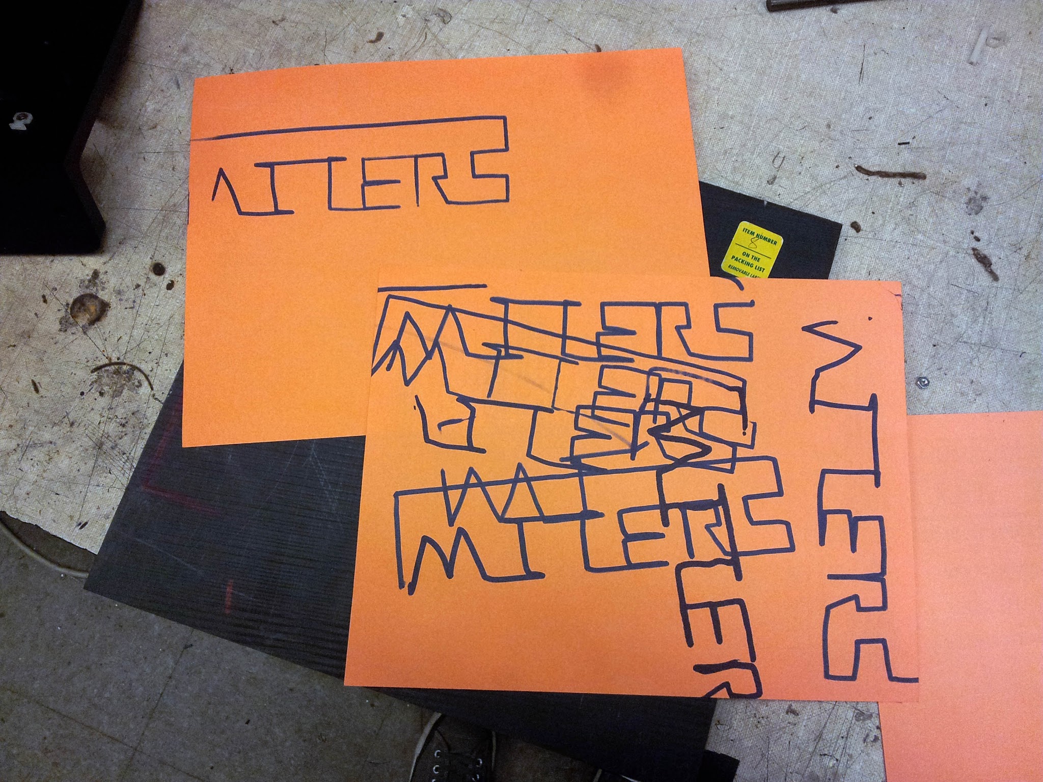 Here's what the "MITERS" text looks like. Once again, I was just holding the paper below the arm with my hands.