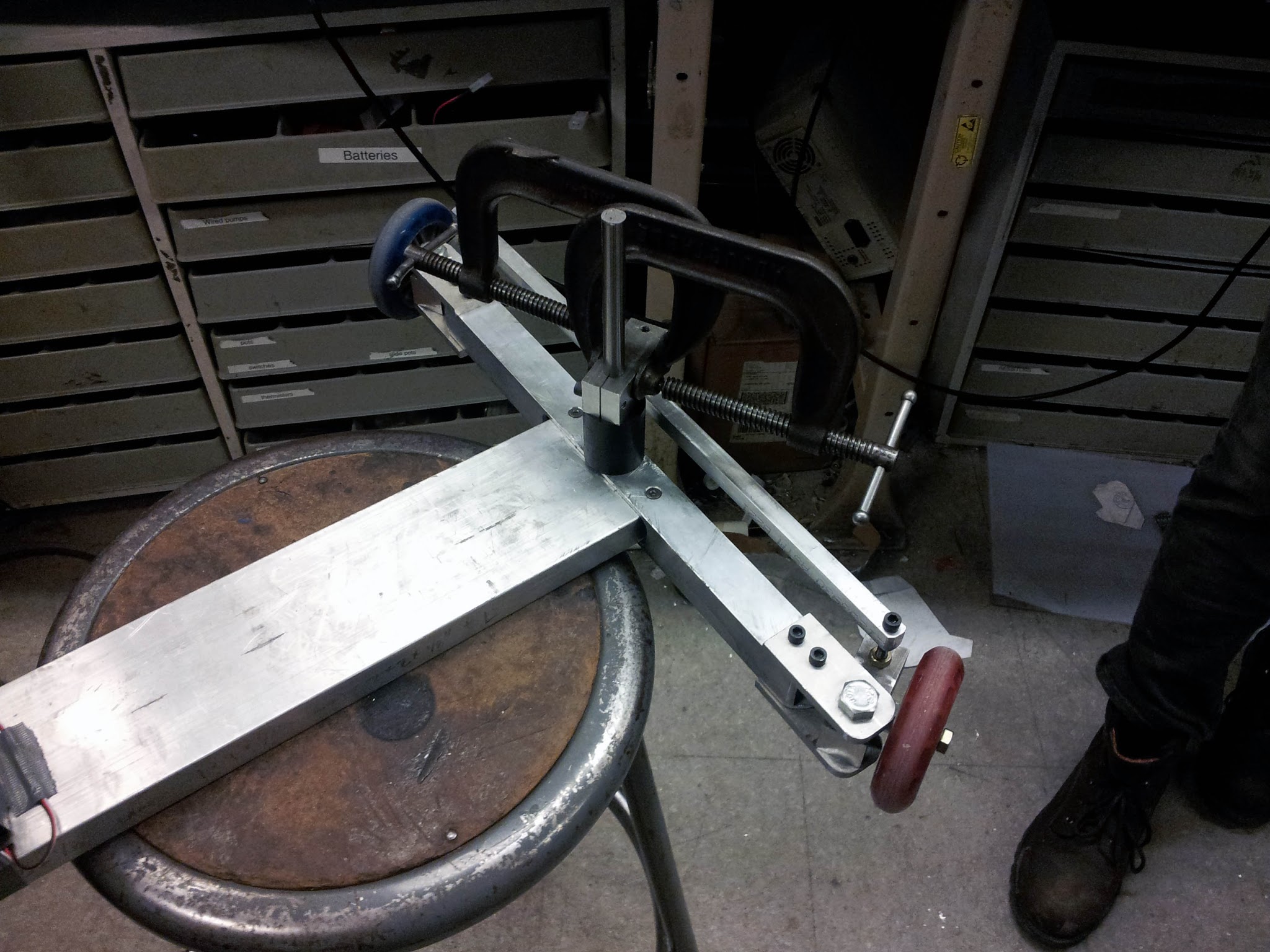 To test the handling, we pushed it around with some clamps attached as temporary handlebars: