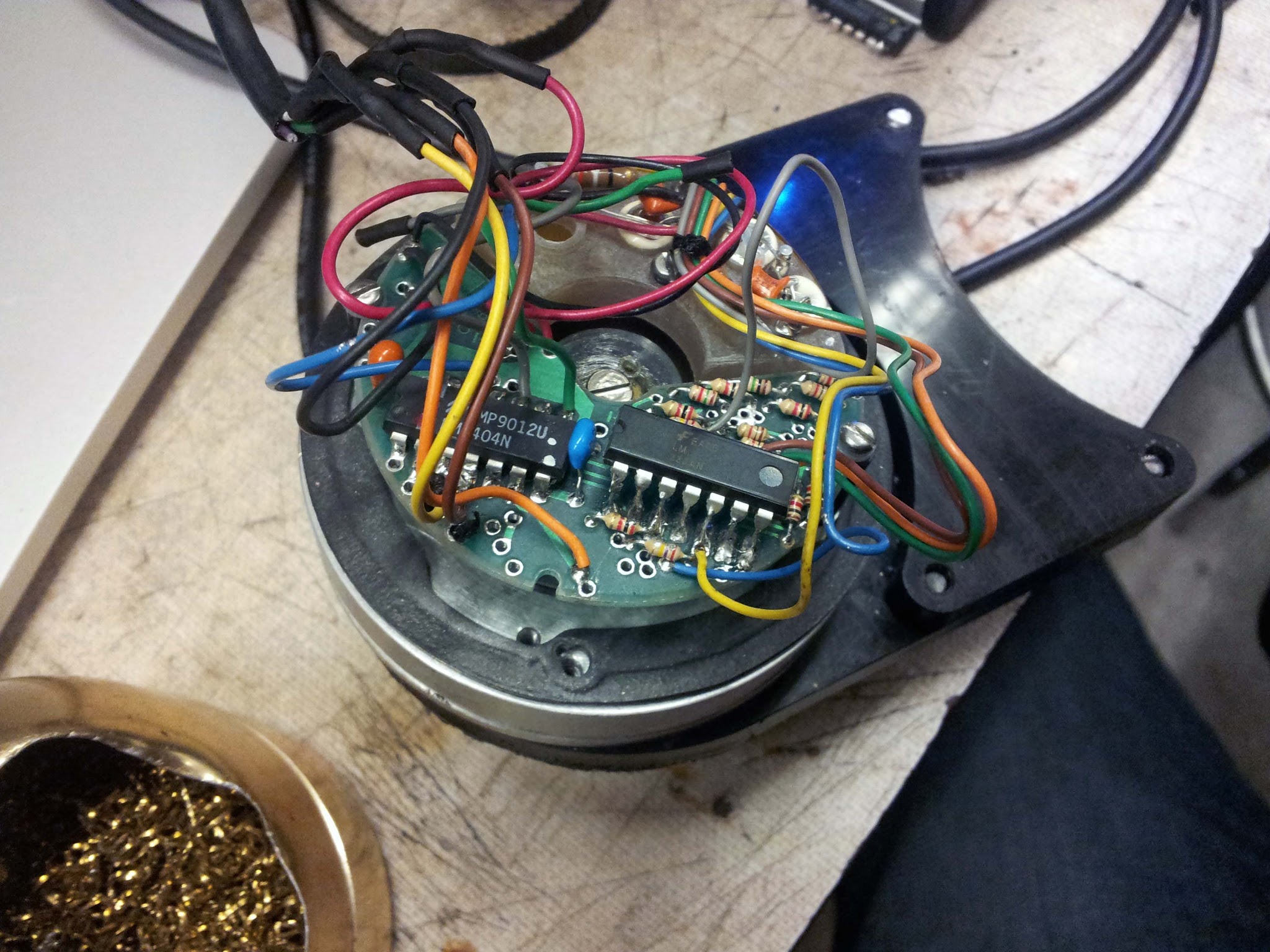 While doing all this testing, all of a sudden the readings from one of my encoders got stuck. I probed the encoder outputs, and found that one channel was stuck high. I cracked open the encoder to investigate further, and found this: