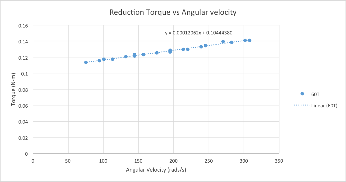 I have made a little progress on characterizing the arm's dynamics for feed-forward control as discussed at the end of the last update. To start out I took some measurements to characterize the friction in the belt reductions. Somehow in the past month my data from the 72 tooth reduction disappeared, but I still have everything from the 60 tooth one, and I remember they were virtually identical: