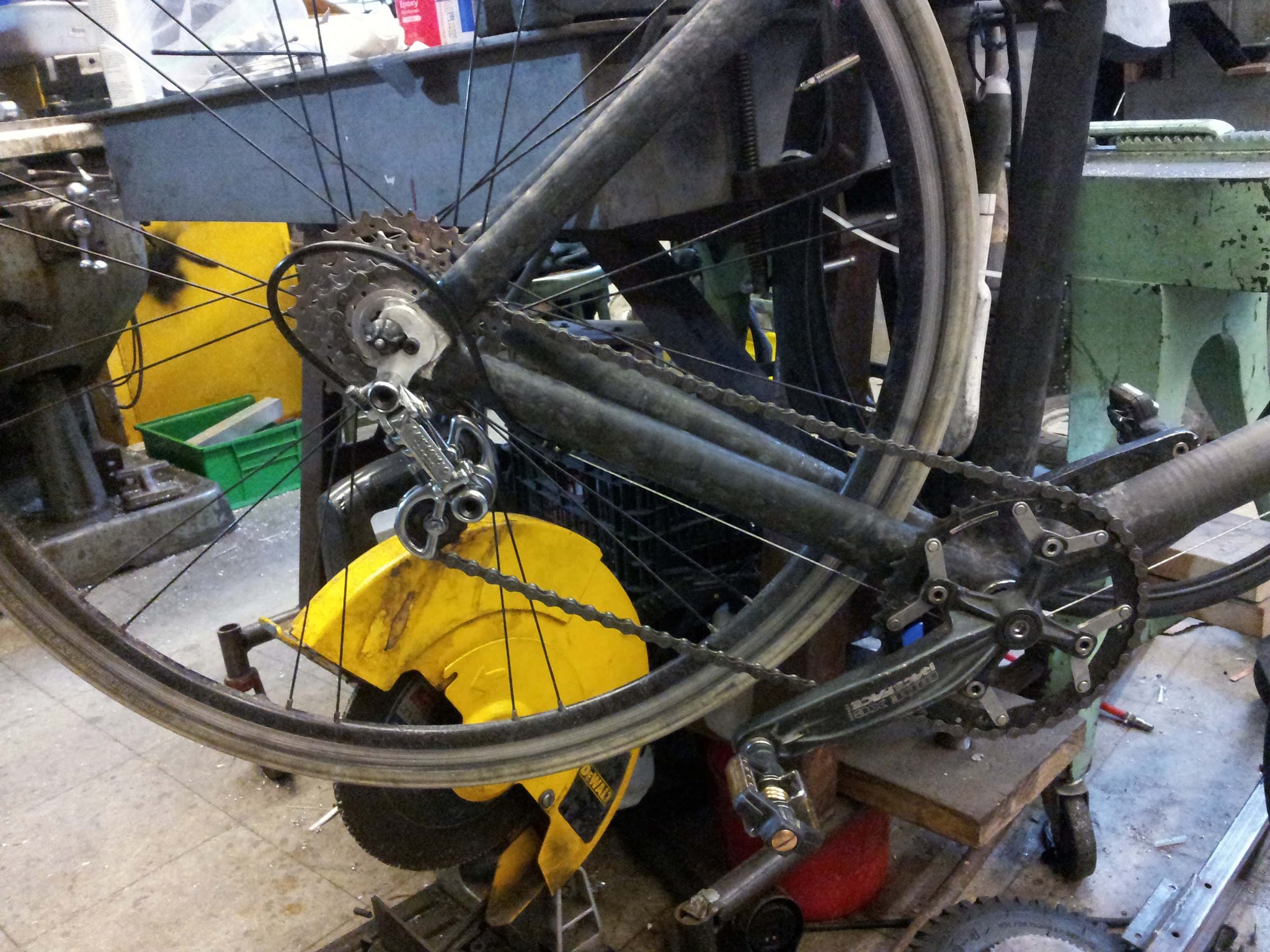 Over spring break I added a cassette, rear derailleur, and shifter to the carbon bike. The shifter and derailleur were taken off my now unused bamboo bike, while the cassette was scrounged from MITERS.