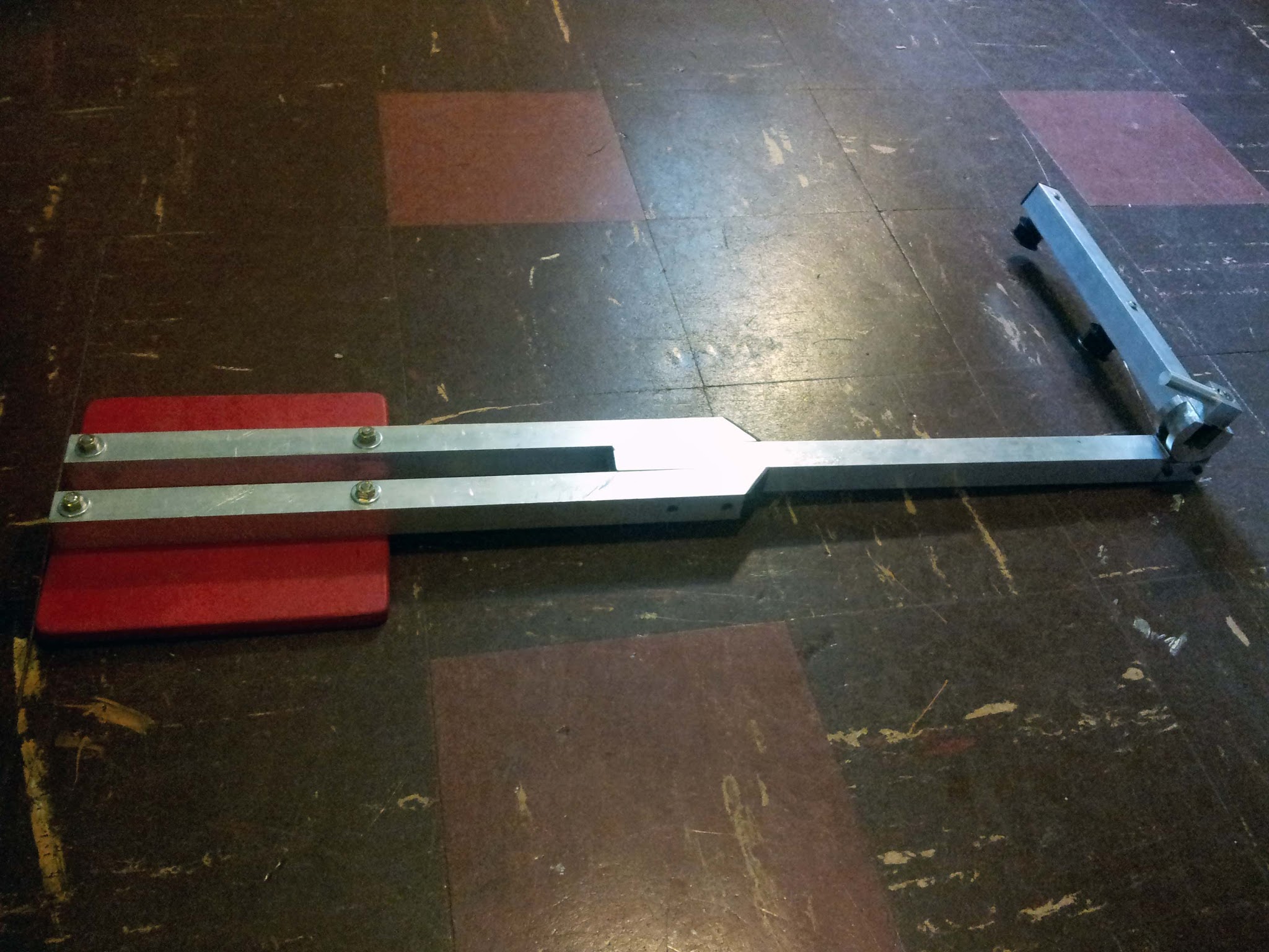 The red pad is where the bottom half of the lift assembly bolts to the playing field: