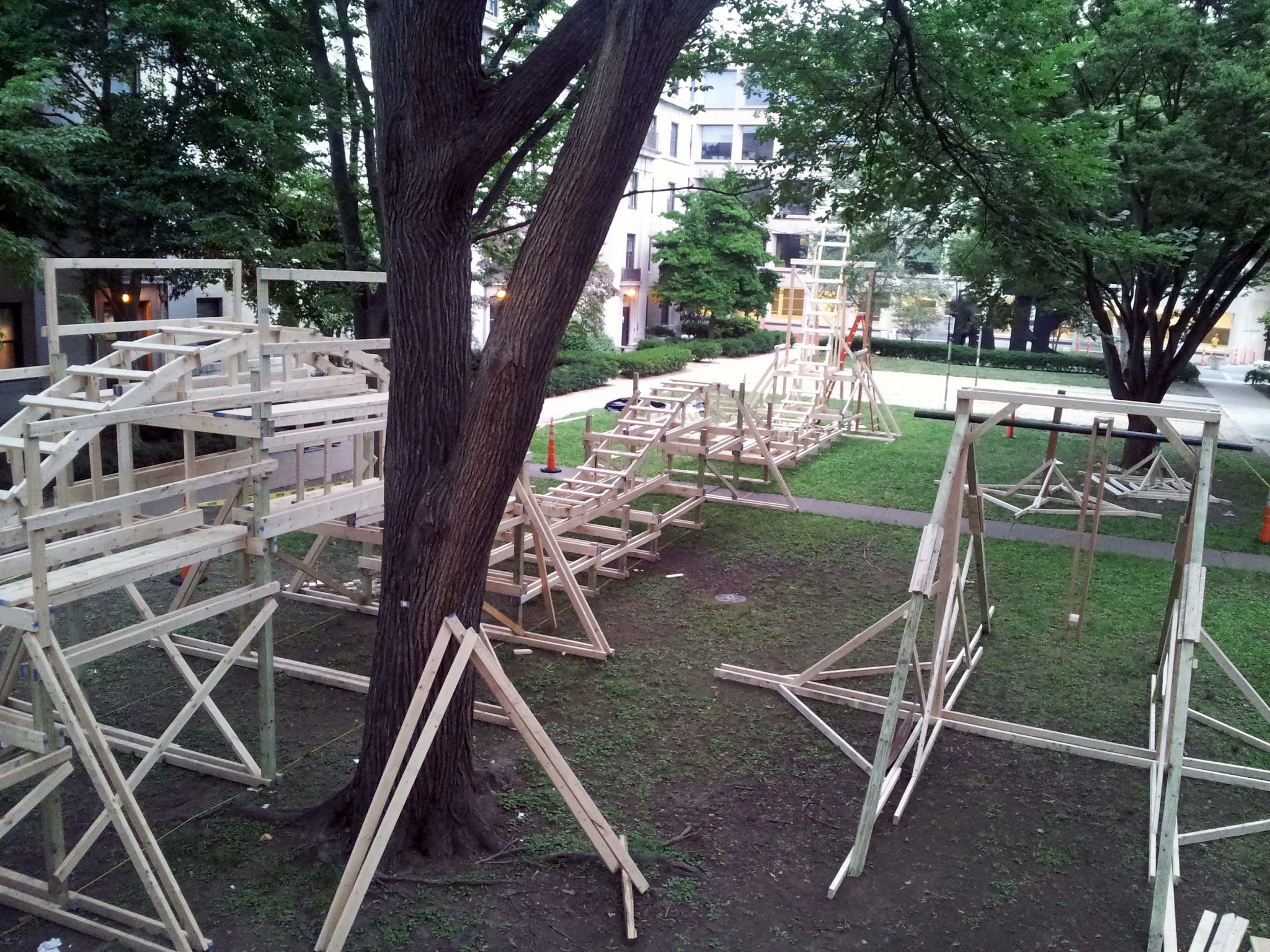 And finally, a shot of the roller coaster plus fort (designed by Lauren '16 and Amanda 15'). I was doubtful that we would be able to build all of this given our time and labor constraints, but somehow we did: