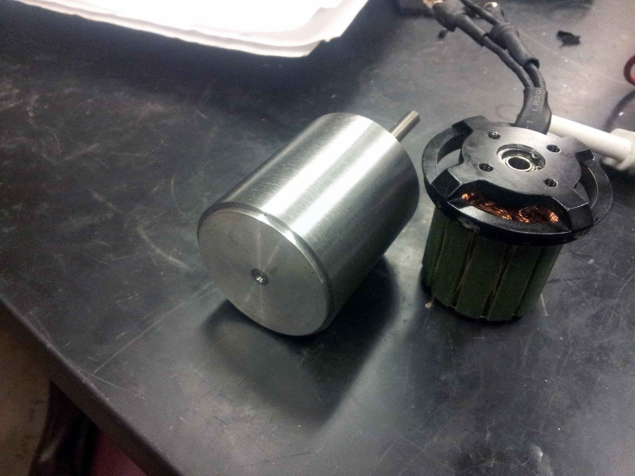 I turned an aluminum can for the rotor, leaving as small an airgap as I could. Something around .25mm