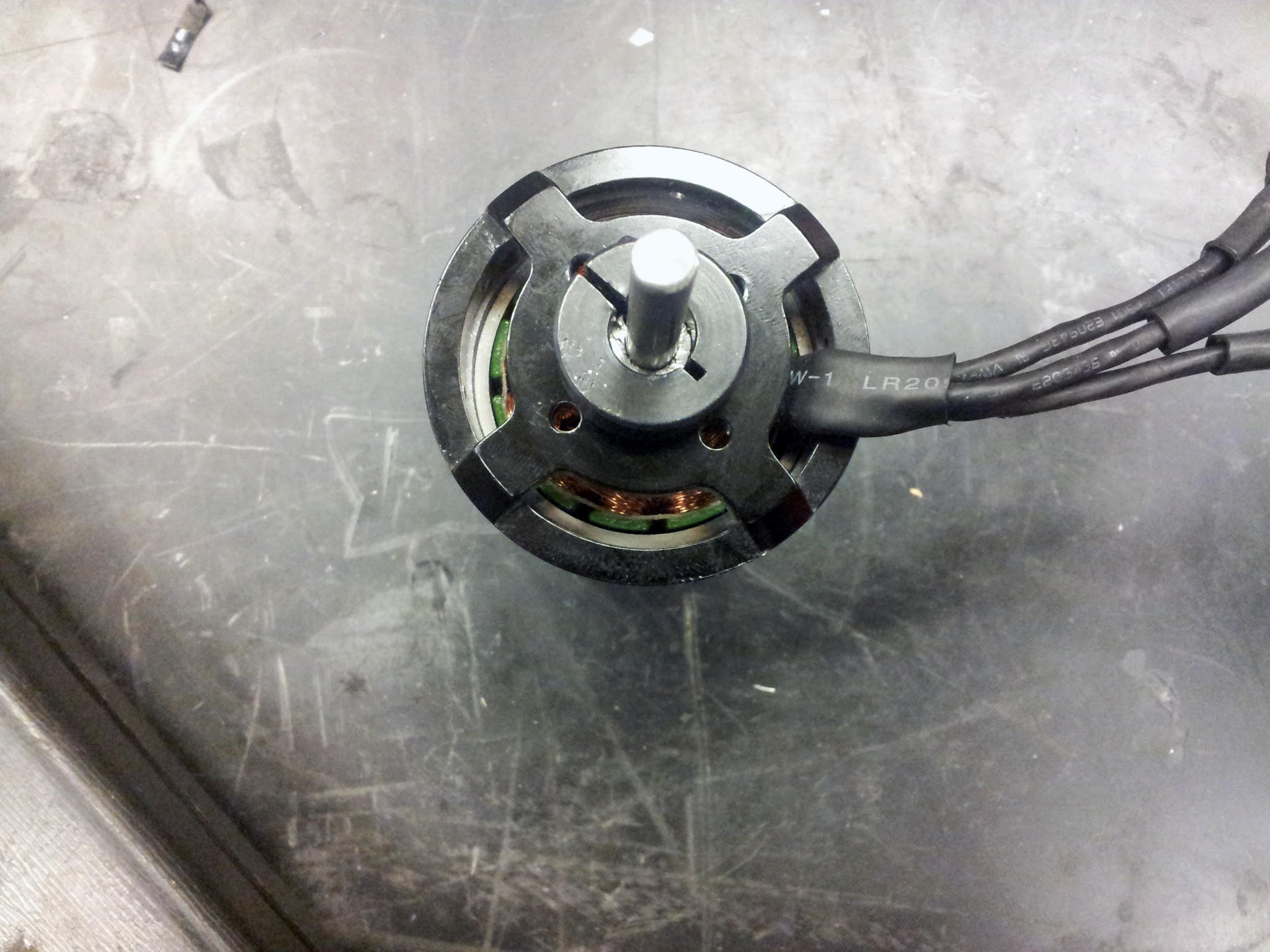 Here's the stator. Nice and densely wound, and it even has string holding the windings in! Slightly above a hobbyking-grade stator.