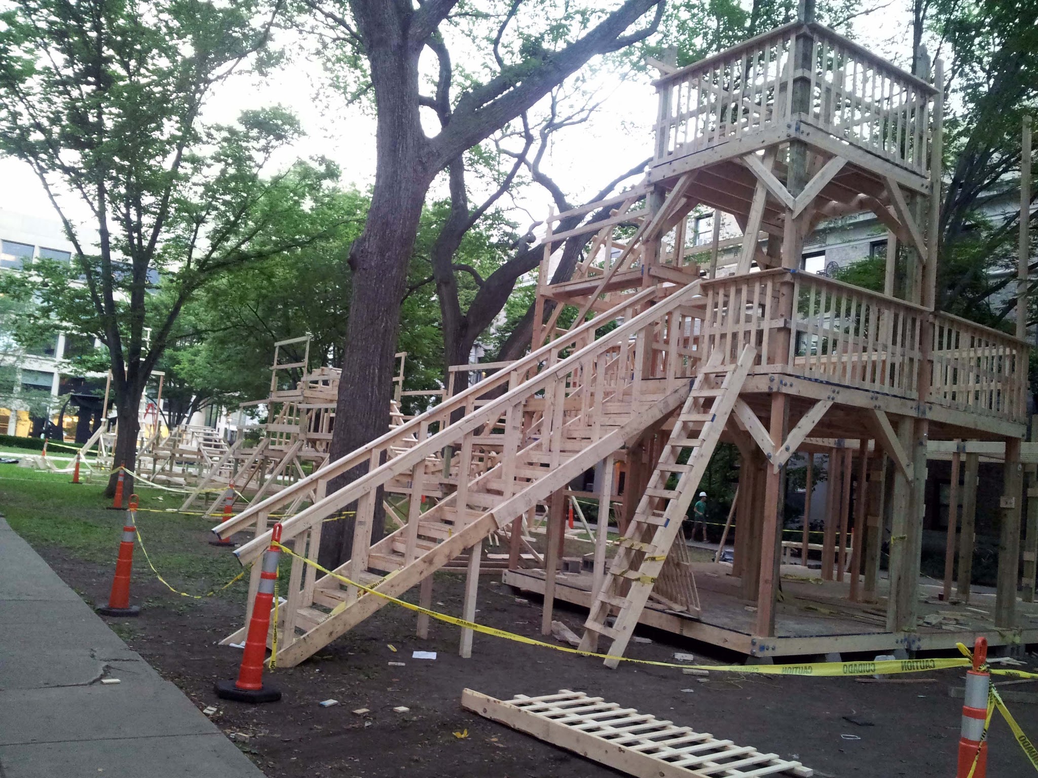 Construction took place over a week, and was done by a combination of East Campus residents, incoming freshmen, a few students from other dorms, and a few random strangers.