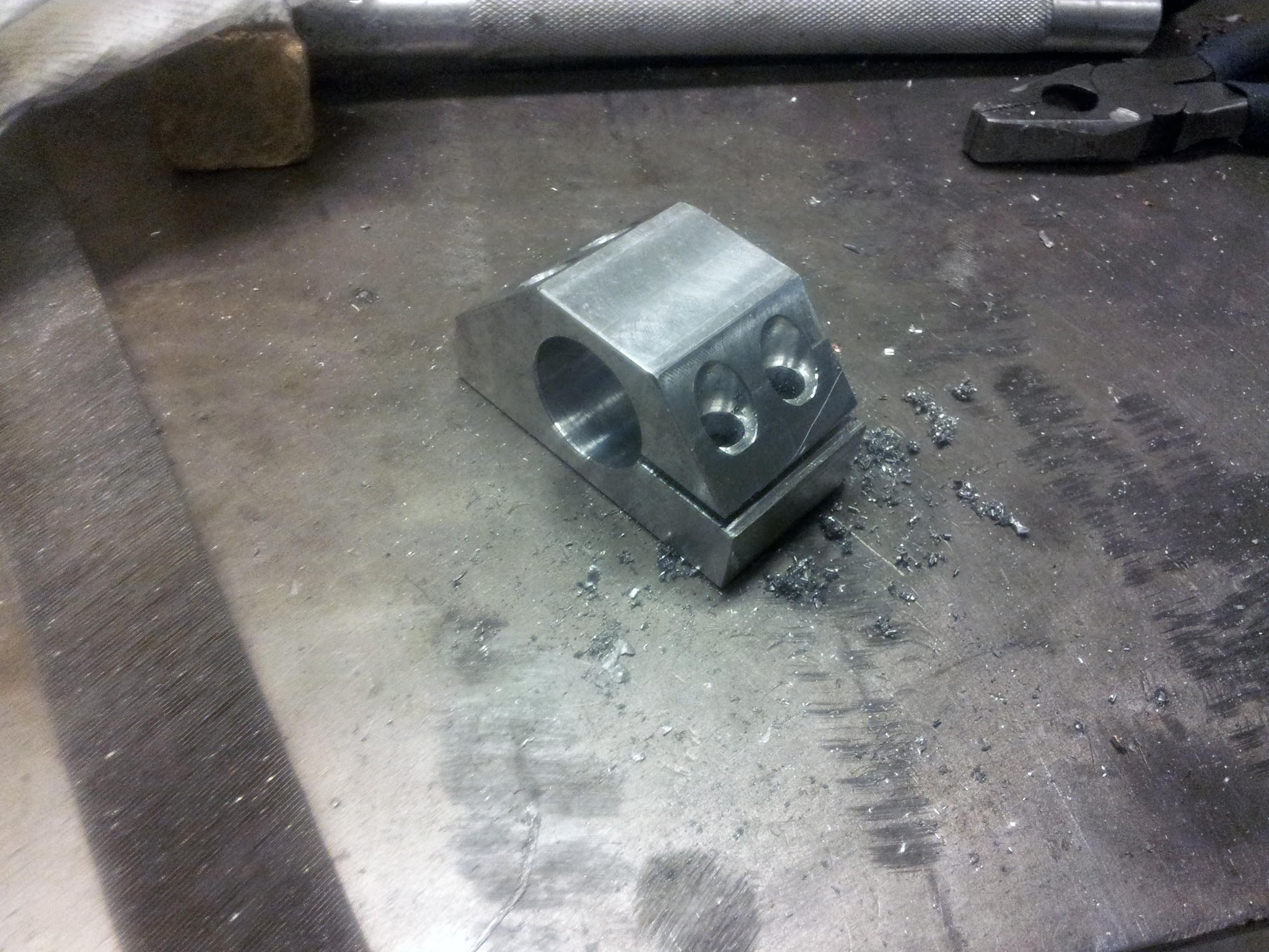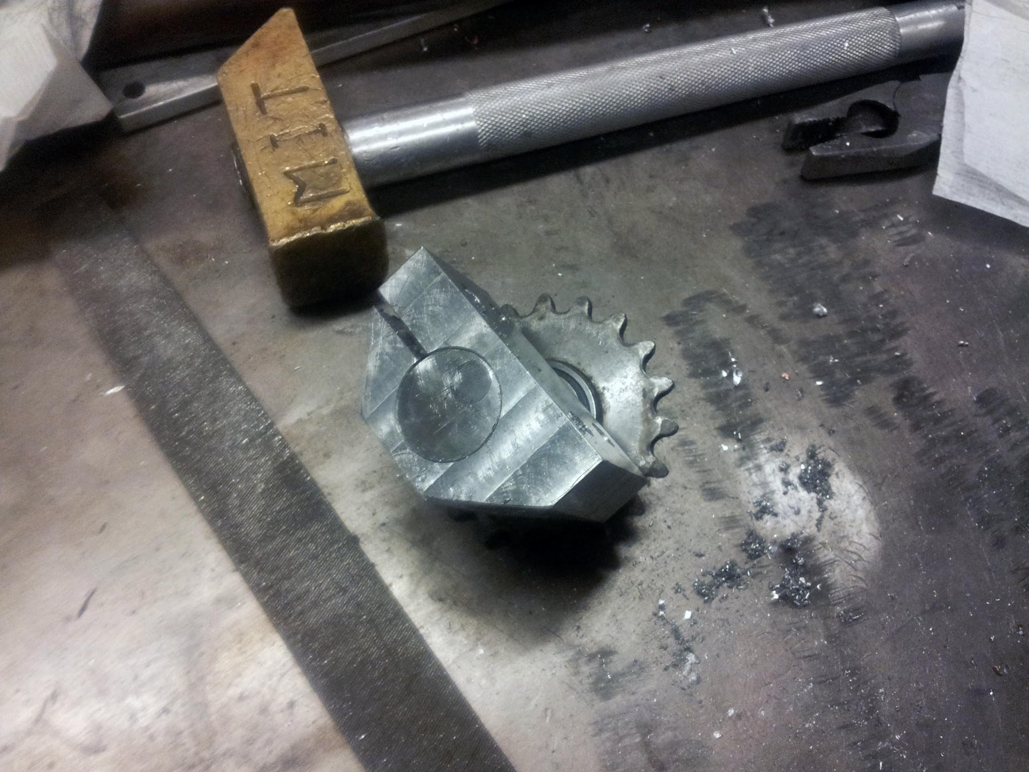 The sprocket gets clamped in this block, and rotated to apply the desired tension: