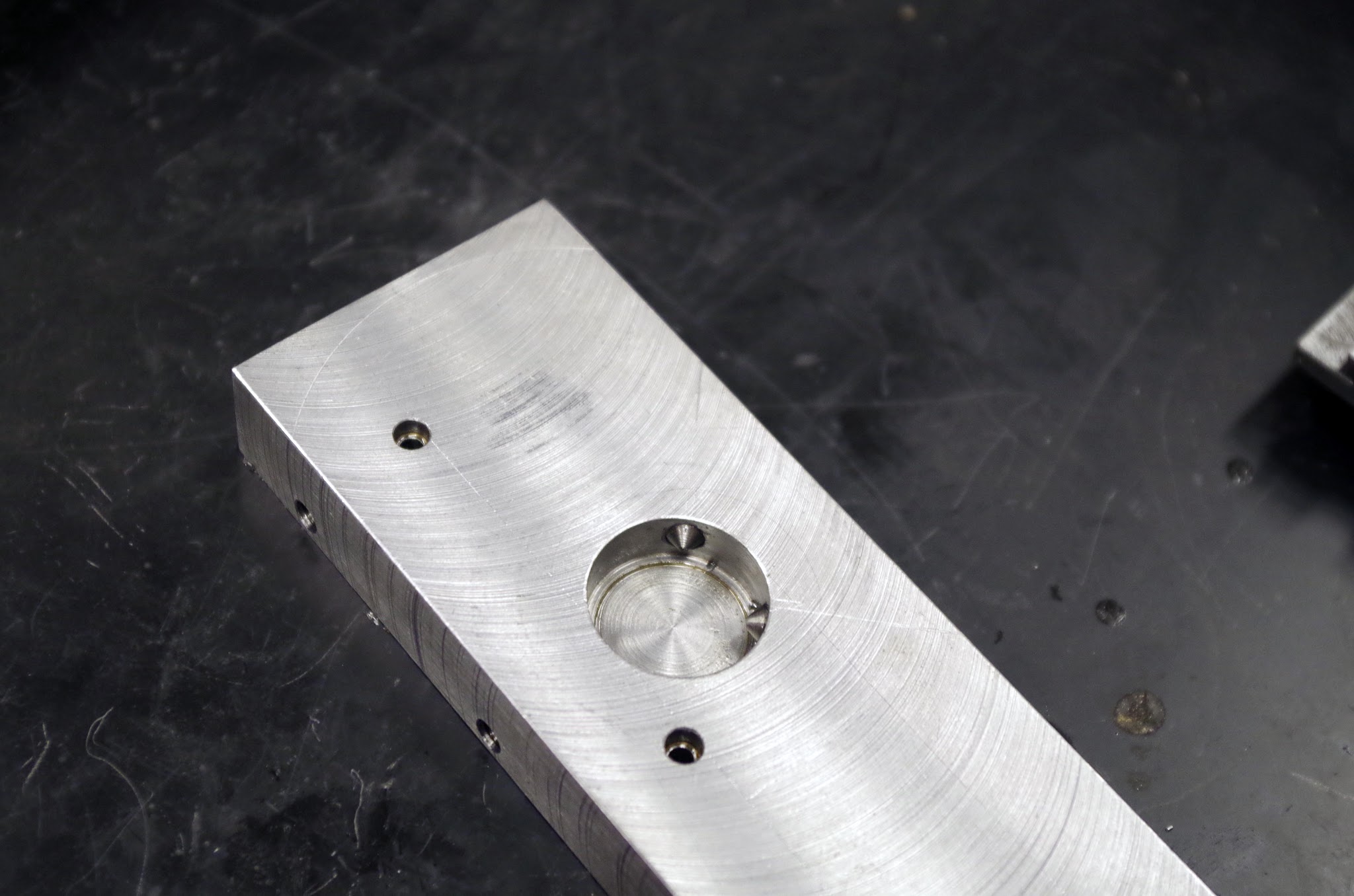 The compound was made from two pieces, a dovetail slide which holds the ball nut, and a cone-shaped base. The two pieces were silver-soldered together.