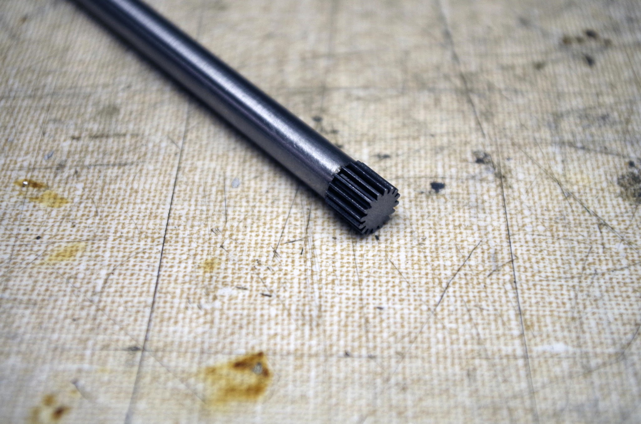 The handwheels are threaded onto the end of the ballscrews. To to this, I cut a small section off one of the ballscrews, and used an angle grinder to cut slots into it, making a "ball tap" of sorts.