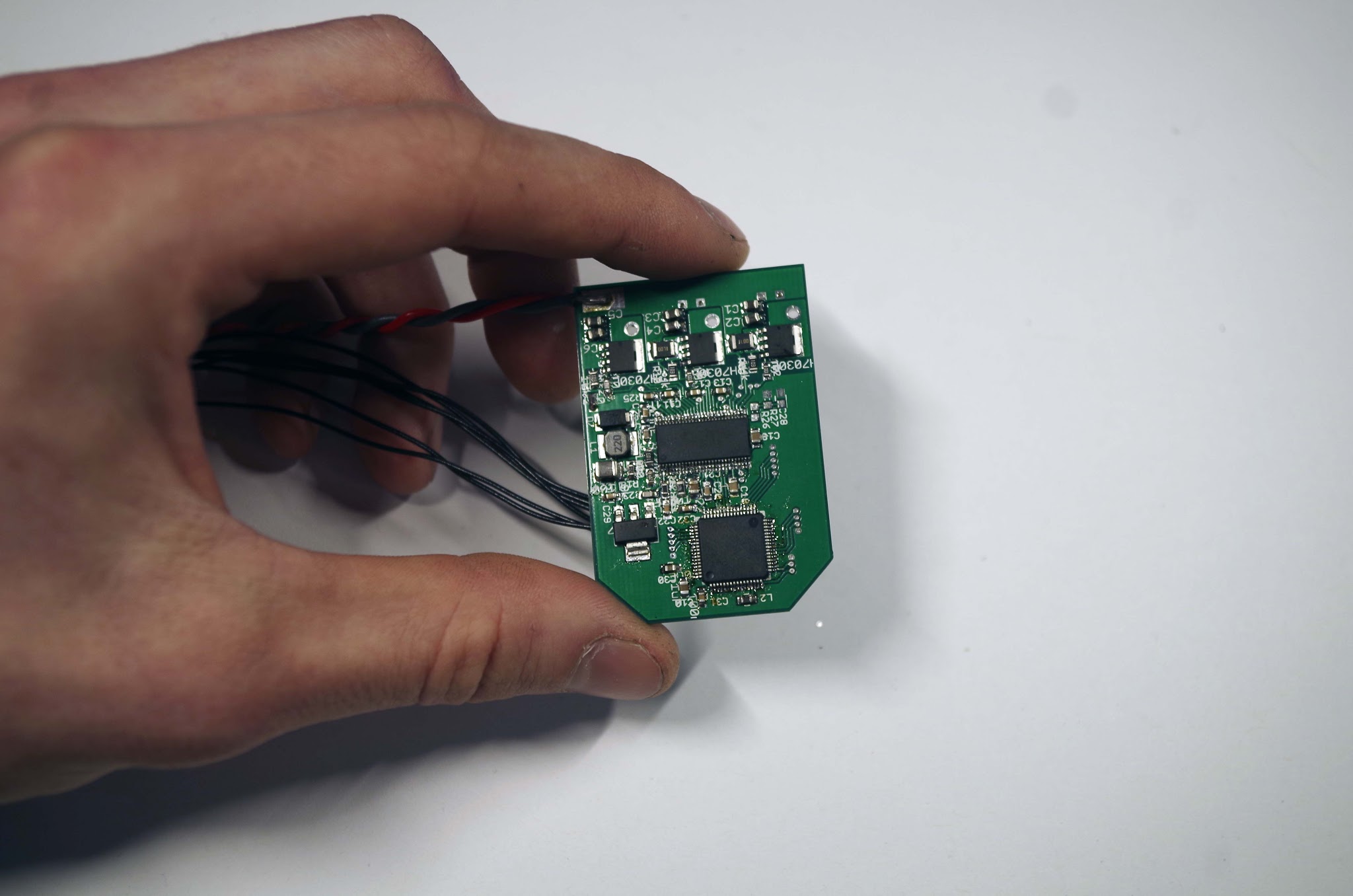 There are supposed to be little 1mm pitch JST connectors on the bottom for programming, sensors, and communication, but my cables haven't showed up yet. So for now I'm just programming through soldered in wires.