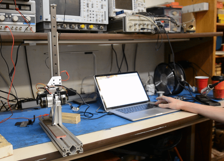 Last night I reworked all the communication to happen directly over serial, and hooked the leg up to a more capable power supply. Performance was greatly improved. Now the leg can max out the travel of the linear guide it's fixed to: