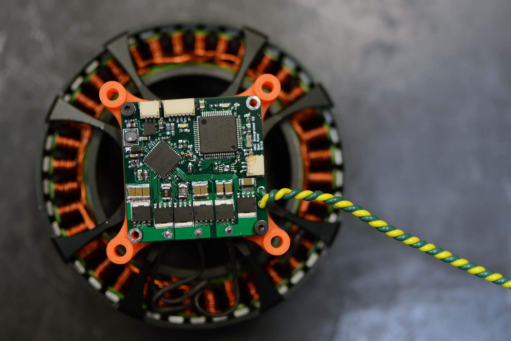 Attached to a motor. Unfortunately I forgot to take a picture of the board before doing a lot of reworking on it, so it's kind of ugly now: