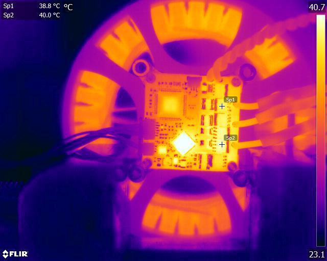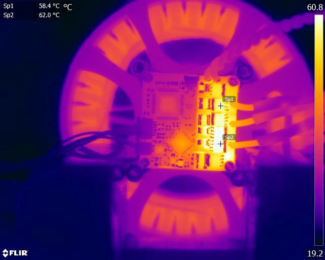 The heatspreader, motor mount, and the back of the motor were all within a couple degrees of each other, with all the temperature drop happening between the FETs and the heatspreader.