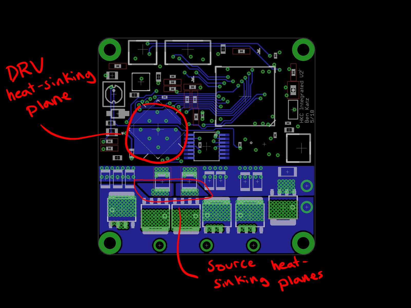 Originally, I had a 0.5mm layer of thermal pad between the board and an aluminum heatspreader and aluminum motor mount beneath.