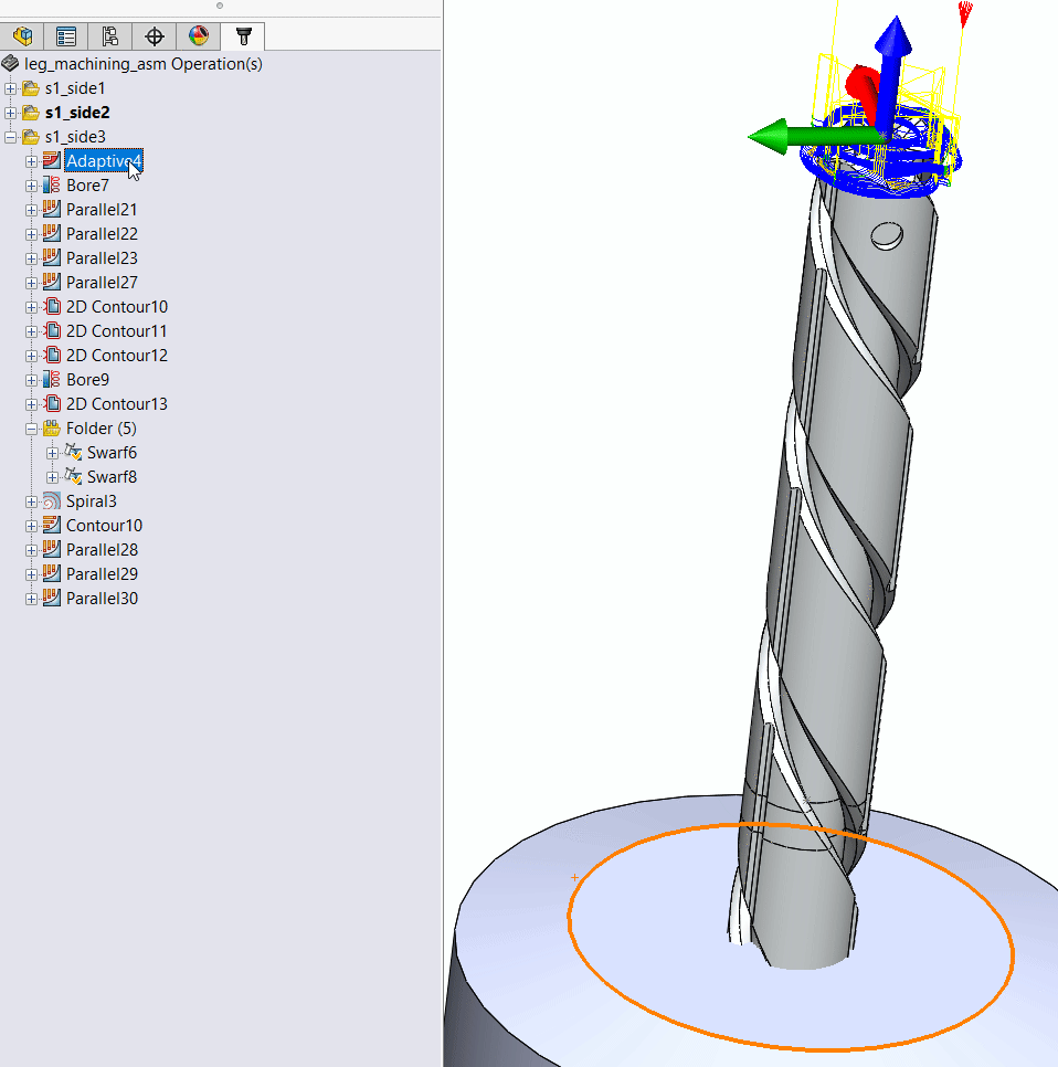 Machining the screw was quite a saga, and I actually ended up outsourcing the part. I could have eventually finished it with the approach I was taking, but it ended up not being worth it for now. It's the wrong shape for the 5-axis mill, so machining the full part required it to be broken into 3 separate pieces with two setups per piece, with extremely good alignment between operations required for smooth cam surfaces. I did think about building some sort of dedicated rotary-CNC contraption, or rigging some mechanism to one of the local bridgeports with an encoder and motor driven rotary axis - maybe if I want to be able to rapidly revise this part I'll revisit one of those ideas.