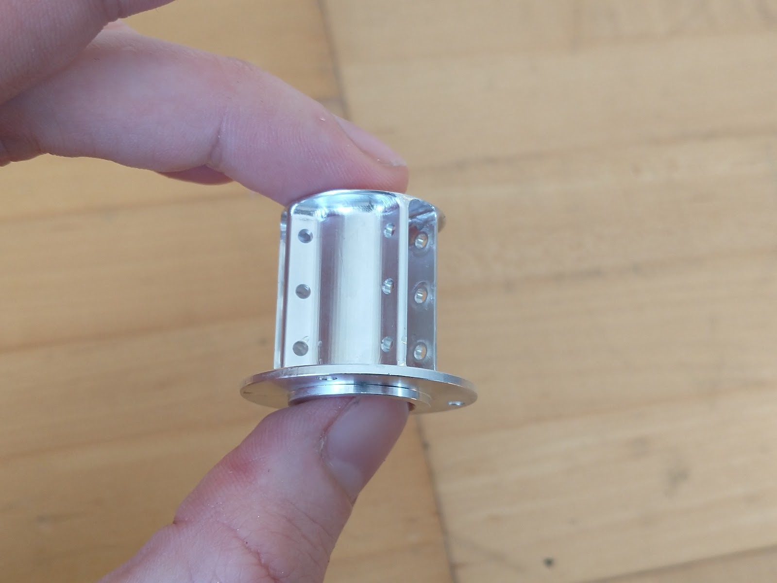 Here's an example of one operation done on one of the parts. For locating adjacent pieces and transferring torque, I put a hirth-esque coupling at the ends. The plan was to drill all the way through the center of each part and clamp the whole thing together with a long tie rod down the center.