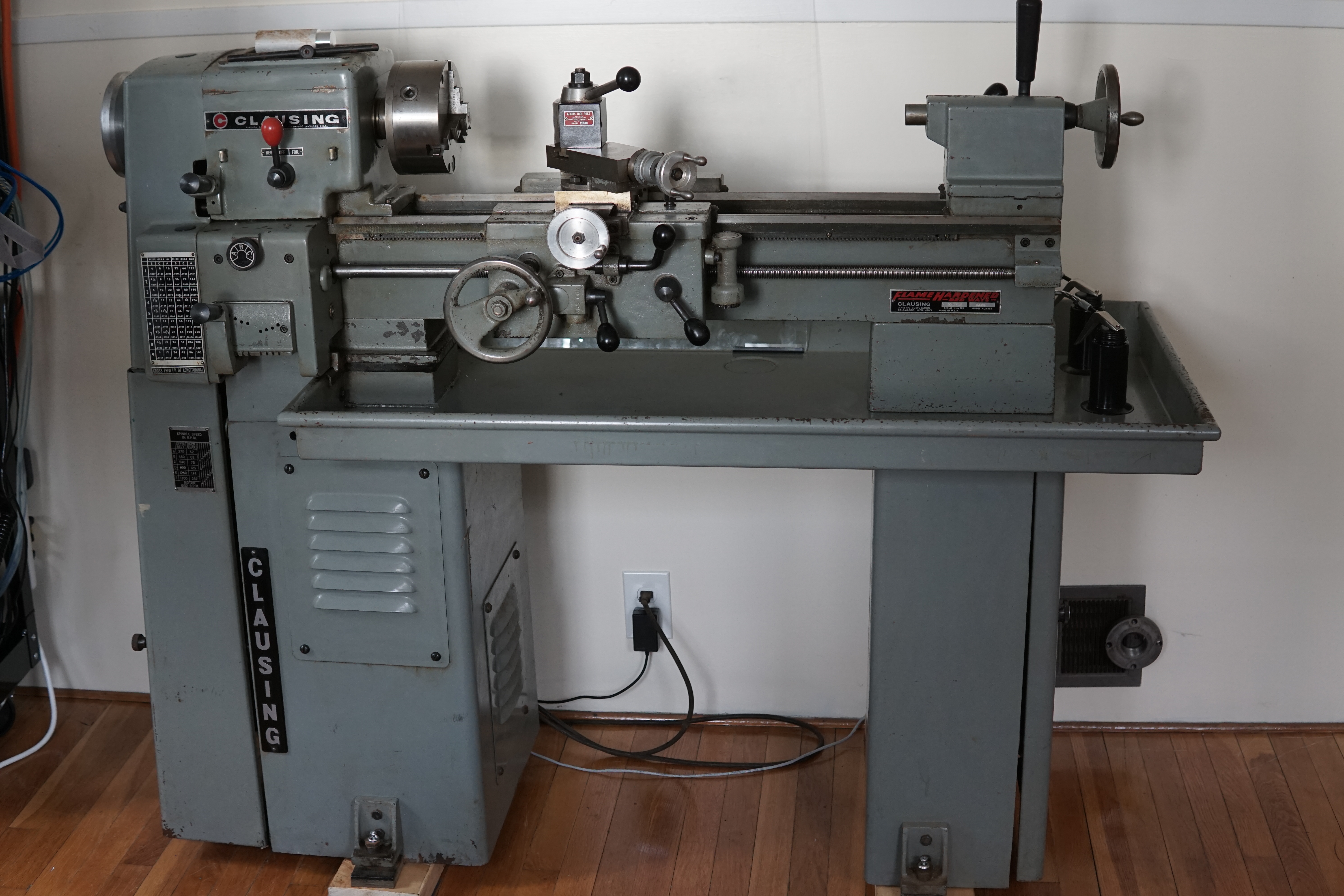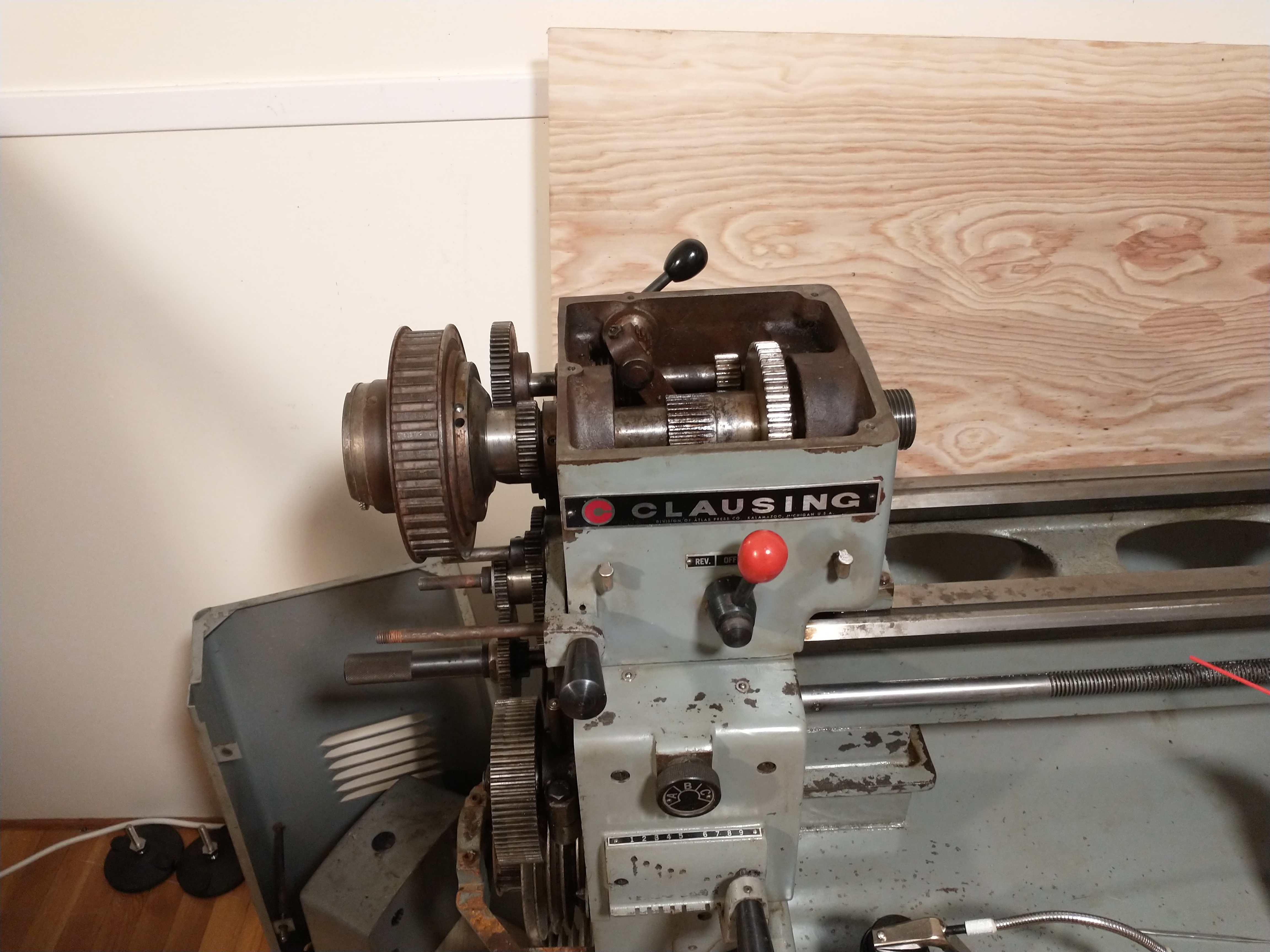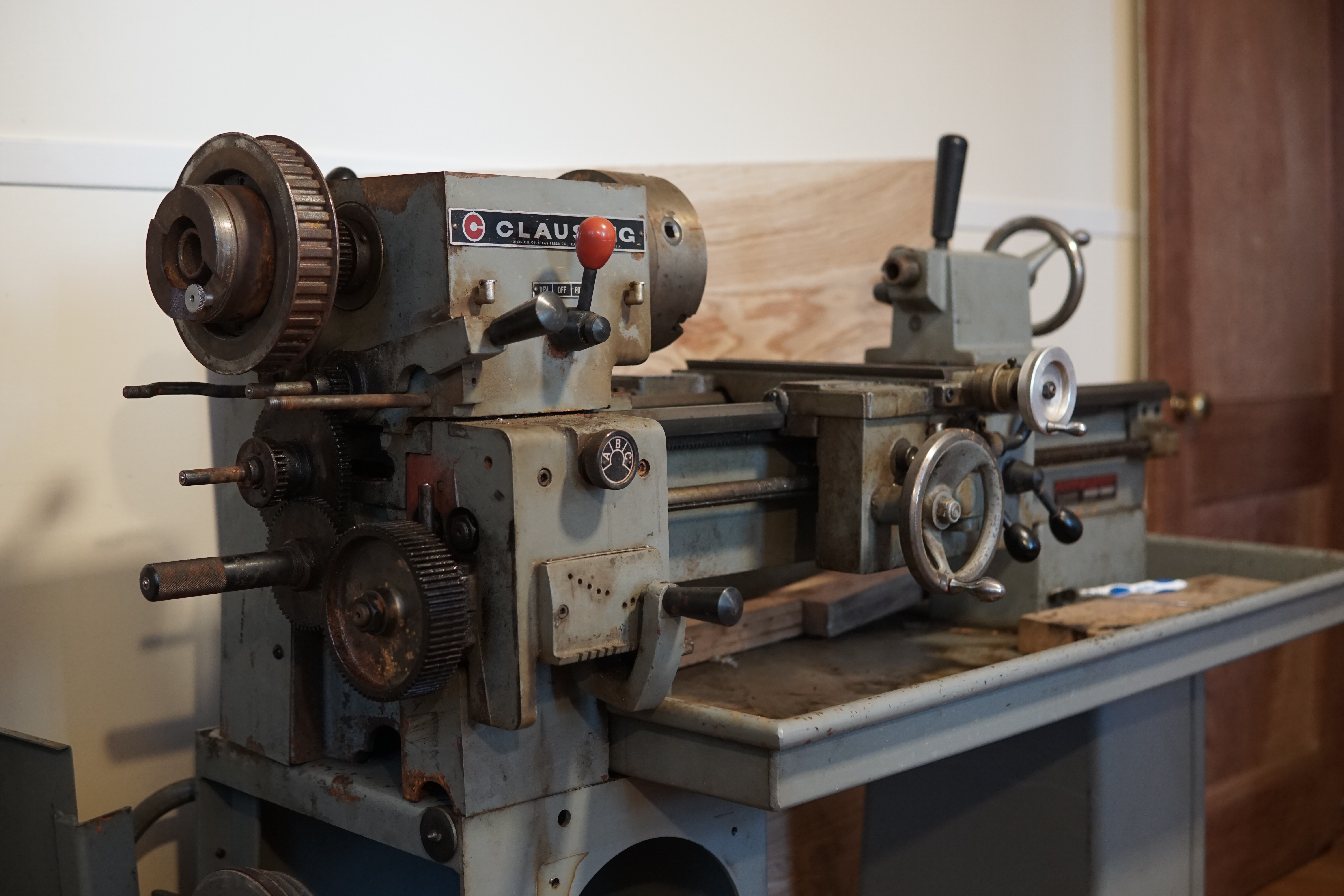 MITERS has a Clausing lathe of the same era, a 6918, which looks almost exactly the same but scaled up around 50% in every direction - from the original pictures I saw, I was expecting something more like the MITERS-lathe.