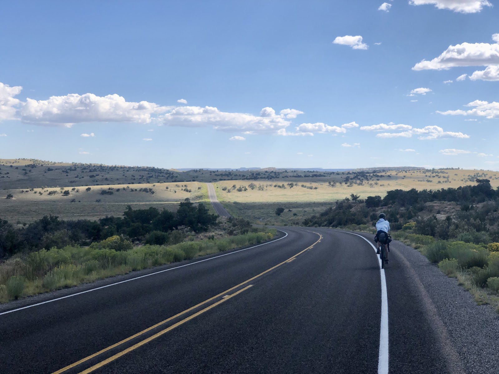 Leaving Abiquiu, NM, beginning one of the longest climbs of the trip.